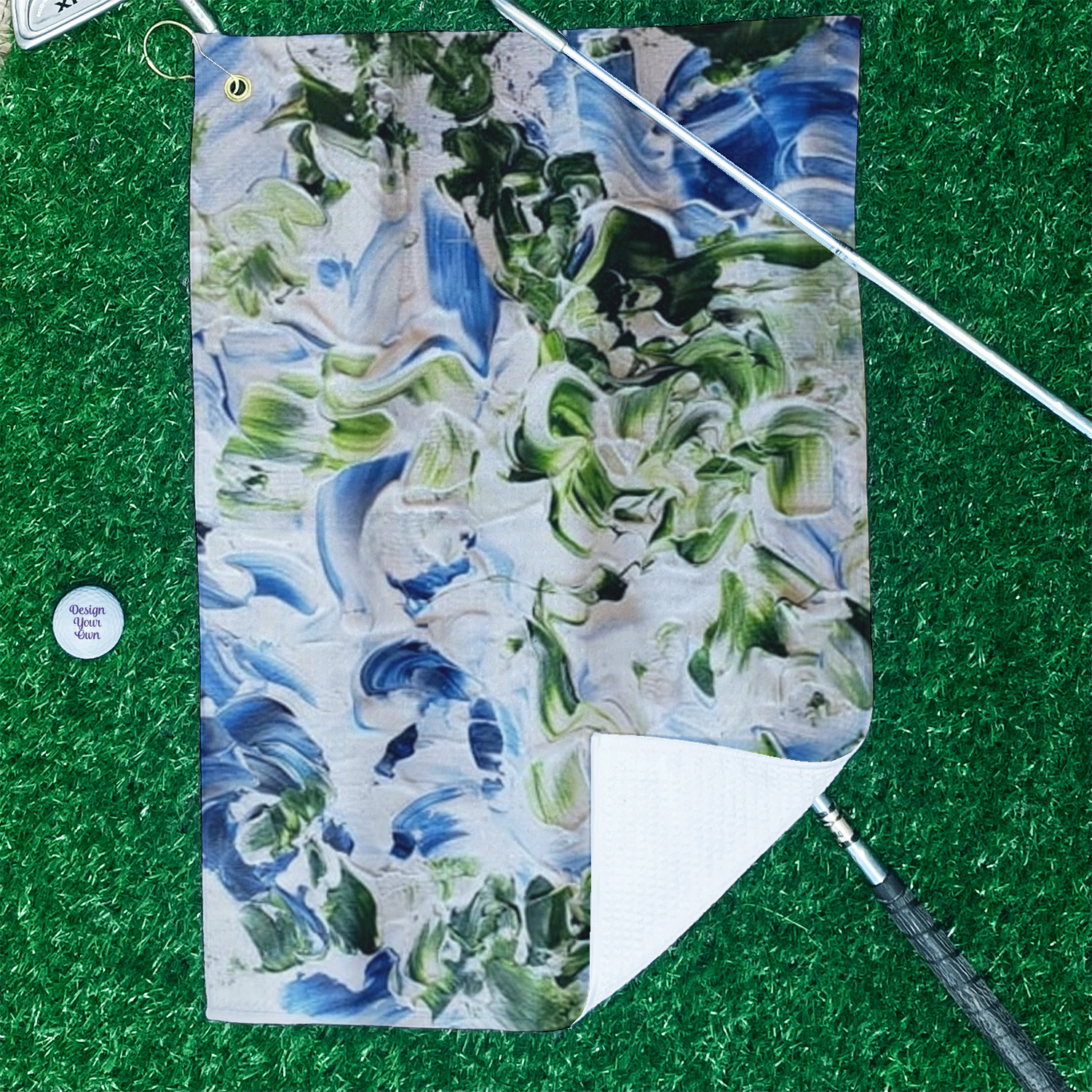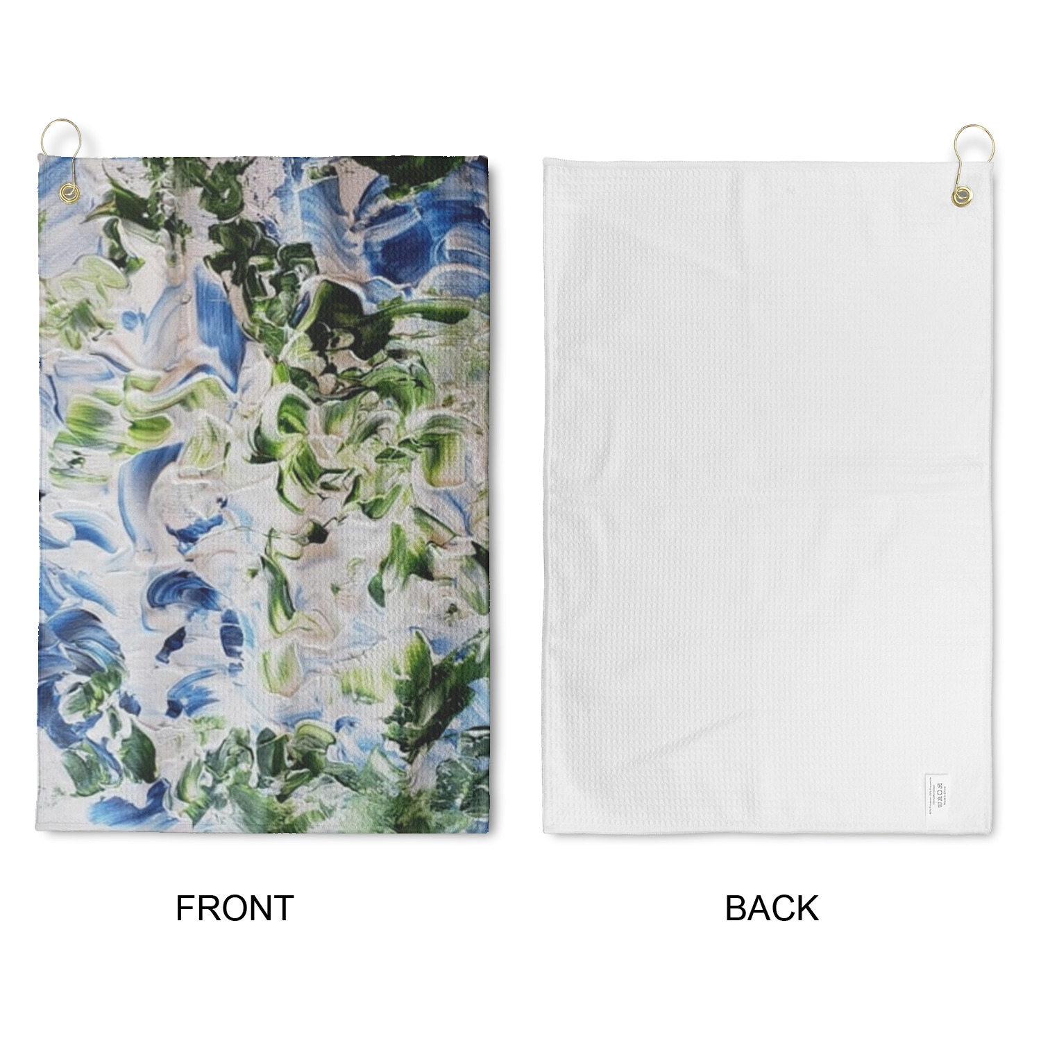 Your custom design is printed on the front and the back is white. The woven honeycomb pockets give you a great texture for scrubbing and cleaning those grass stains off your club or a dirt spot off your ball to ensure your equipment is all in peak condition.