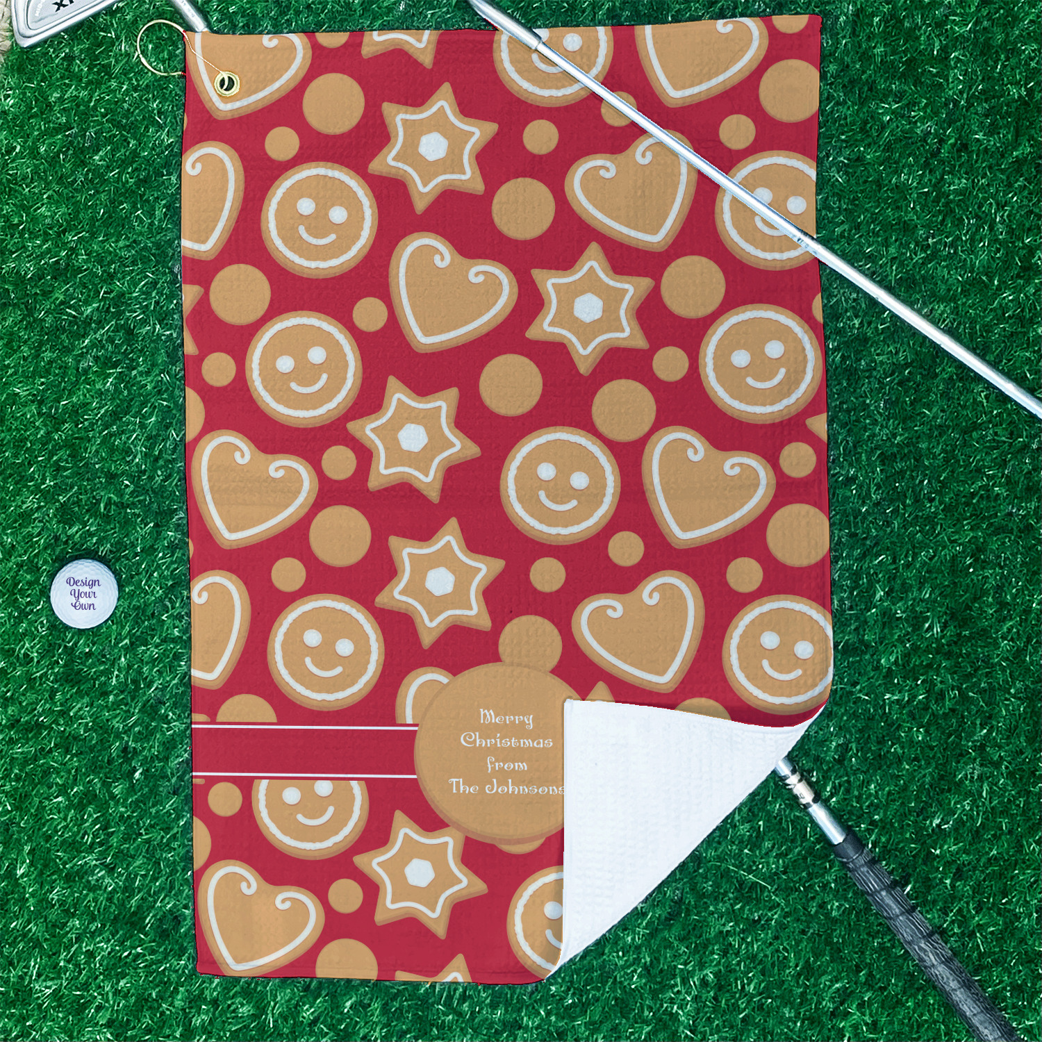 Gingerbread Cookies Design on Custom Waffle Weave Golf Towel