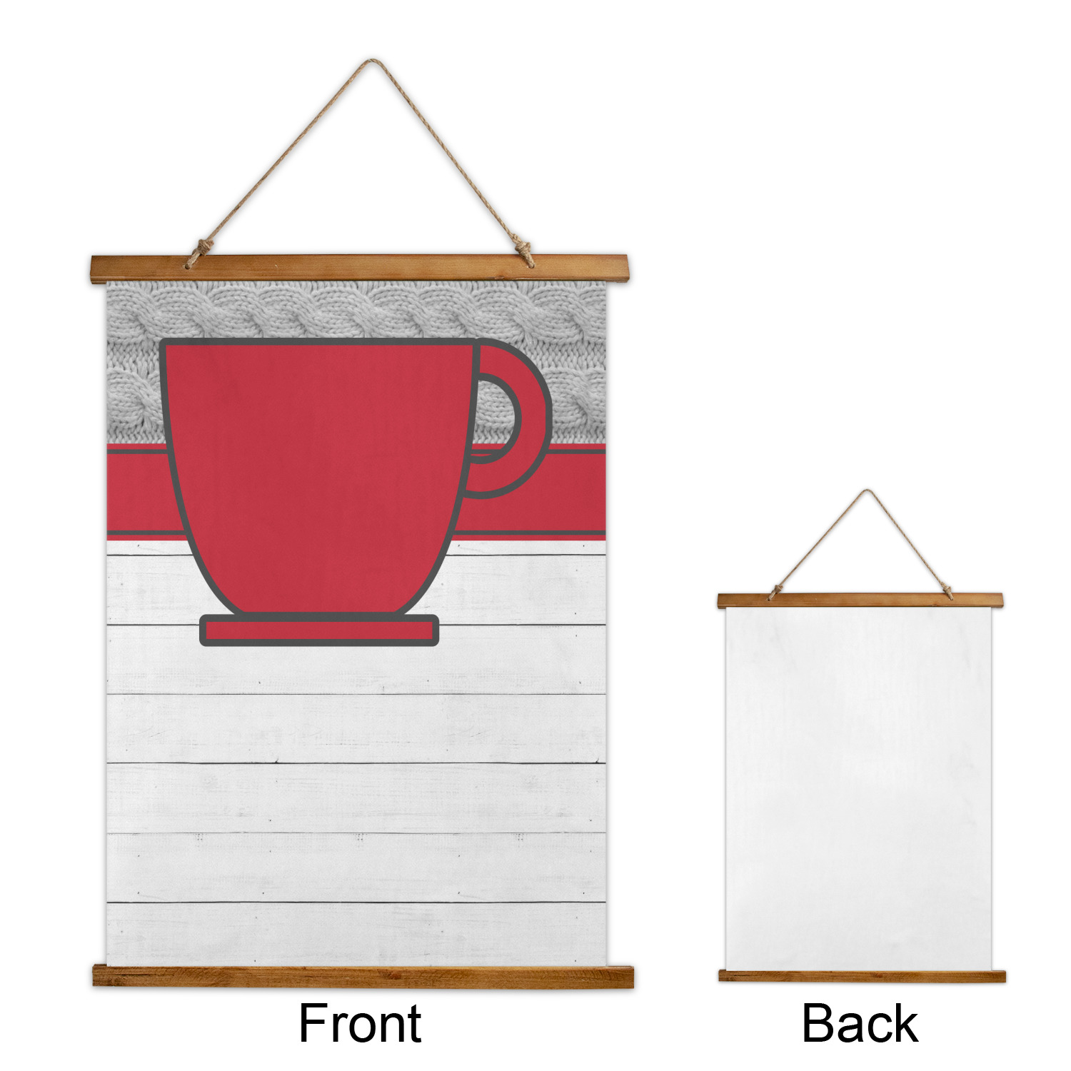 Made in two different orientations - portrait or landscape - both are 26" x 36". Your design is printed on a high quality polyester fabric with hemmed edges. The wood on the top and bottom of the tapestry is 1.25" tall and 0.25" thick and there are two pieces on top and bottom which sandwich the fabric.