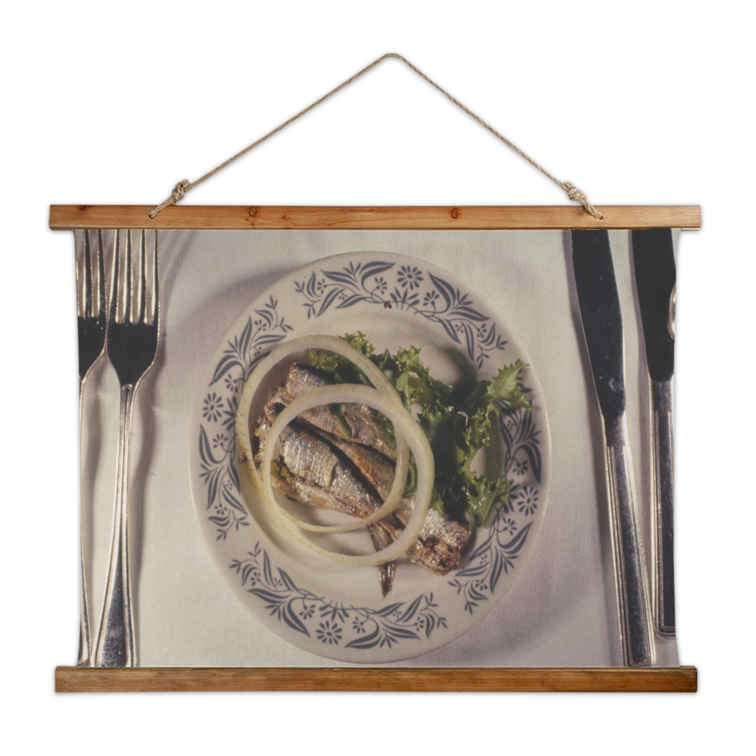 Made in two different orientations - portrait or landscape - both are 26" x 36". Your design is printed on a high quality polyester fabric with hemmed edges. The wood on the top and bottom of the tapestry is 1.25" tall and 0.25" thick and there are two pieces on top and bottom which sandwich the fabric.