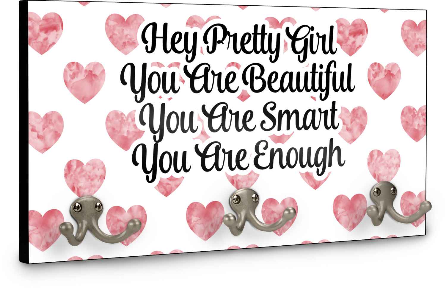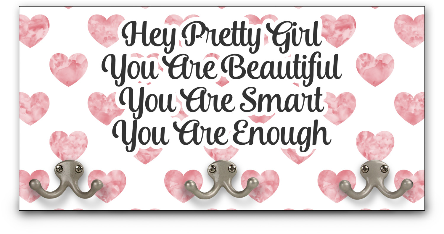 This coat rack is the perfect way to add some personality to your wall or entryway. The board is made of a strong maple that is approximately 16" x 8". The three 2-prong hooks are a sturdy metal that have three screws attaching them to the board. Your design is printed right onto the front of the board while the back and sides are a simple black.