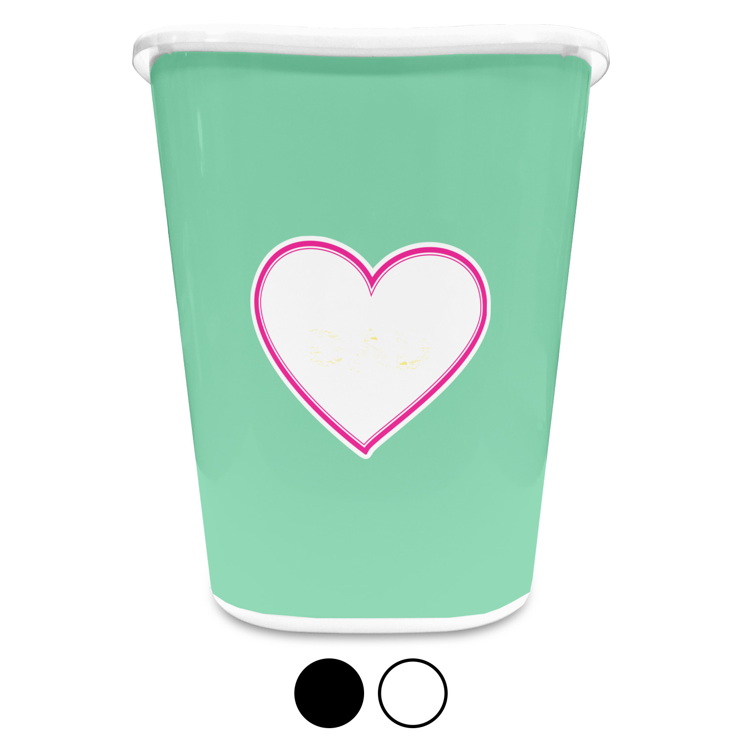 You can choose to purchase these decorative wastebaskets in either a white or a black color that will show on the base and the upper rim. Your customization is printed on a high-gloss, fine-quality vinyl adhesive, and you can choose to either have this adhesive applied to one side only or to both sides. As such, this plastic wastebasket can be single-sided or double-sided, depending on your creative vision. Your customization is printed using durable inks, making the design waterproof and resistant to fading over time.