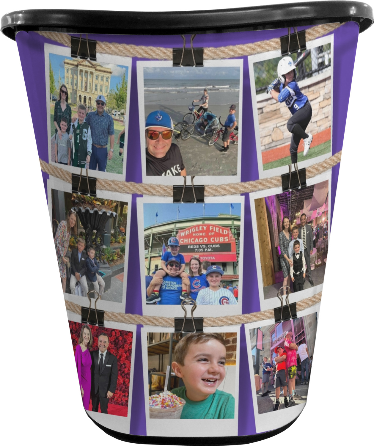 You can choose to purchase these decorative wastebaskets in either a white or a black color that will show on the base and the upper rim. Your customization is printed on a high-gloss, fine-quality vinyl adhesive, and you can choose to either have this adhesive applied to one side only or to both sides. As such, this plastic wastebasket can be single-sided or double-sided, depending on your creative vision. Your customization is printed using durable inks, making the design waterproof and resistant to fading over time.