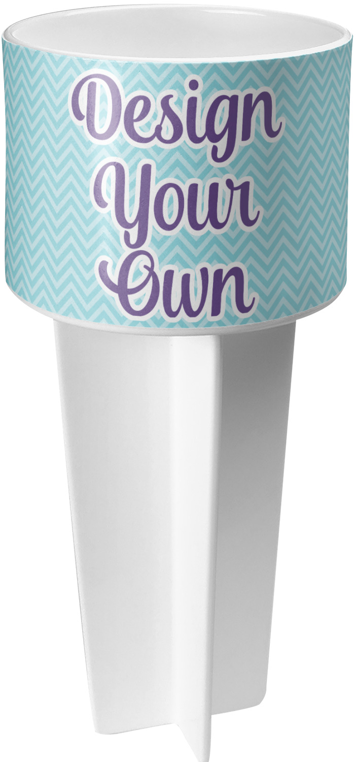 This cup holder has a large stake at its bottom that anchors it to the sand or ground below, while the cup holder rests above the stake. The entire drink holder is made of durable plastic and displays your customization around the cup holder portion. We sell these personalized beach spikers in two different colors: black and white.