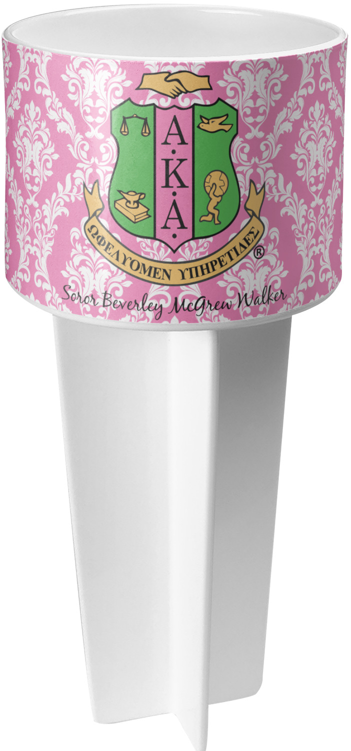 This cup holder has a large stake at its bottom that anchors it to the sand or ground below, while the cup holder rests above the stake. The entire drink holder is made of durable plastic and displays your customization around the cup holder portion. We sell these personalized beach spikers in two different colors: black and white.