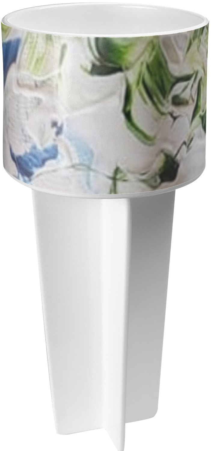 This cup holder has a large stake at its bottom that anchors it to the sand or ground below, while the cup holder rests above the stake. The entire drink holder is made of durable plastic and displays your customization around the cup holder portion. We sell these personalized beach spikers in two different colors: black and white.