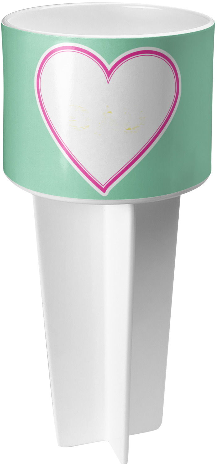 This cup holder has a large stake at its bottom that anchors it to the sand or ground below, while the cup holder rests above the stake. The entire drink holder is made of durable plastic and displays your customization around the cup holder portion. We sell these personalized beach spikers in two different colors: black and white.