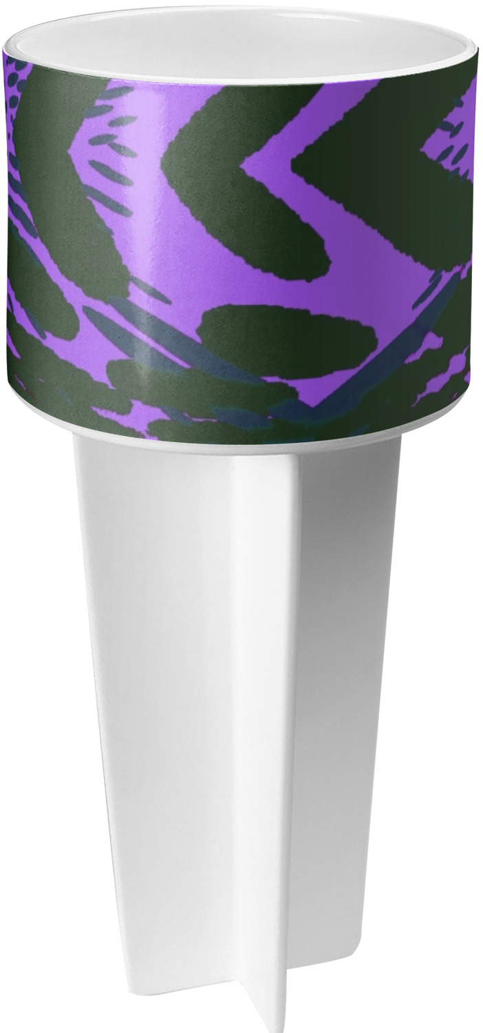 This cup holder has a large stake at its bottom that anchors it to the sand or ground below, while the cup holder rests above the stake. The entire drink holder is made of durable plastic and displays your customization around the cup holder portion. We sell these personalized beach spikers in two different colors: black and white.