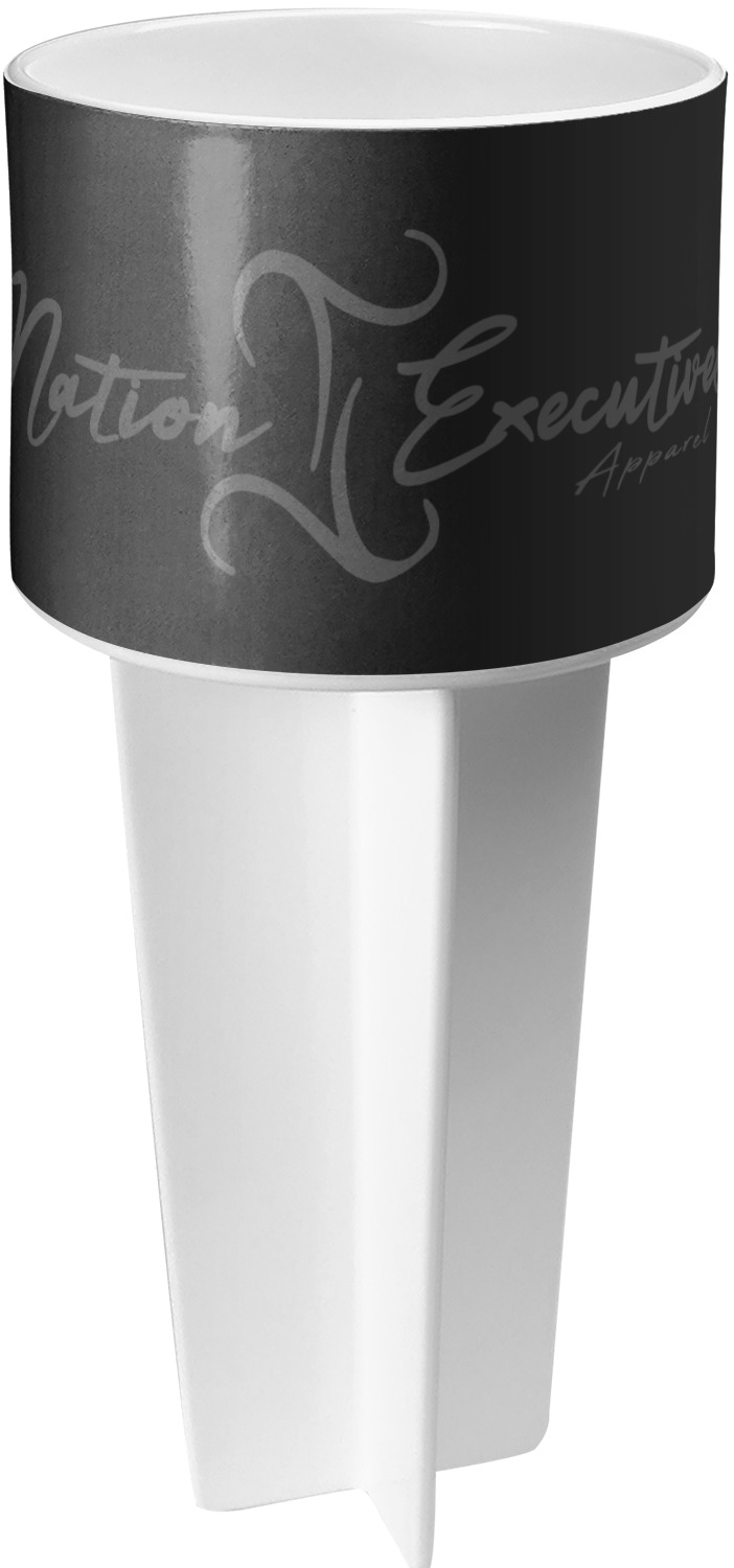 This cup holder has a large stake at its bottom that anchors it to the sand or ground below, while the cup holder rests above the stake. The entire drink holder is made of durable plastic and displays your customization around the cup holder portion. We sell these personalized beach spikers in two different colors: black and white.