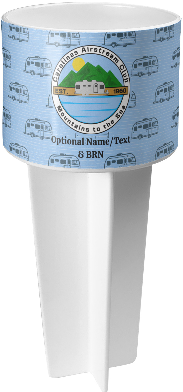 This cup holder has a large stake at its bottom that anchors it to the sand or ground below, while the cup holder rests above the stake. The entire drink holder is made of durable plastic and displays your customization around the cup holder portion. We sell these personalized beach spikers in two different colors: black and white.