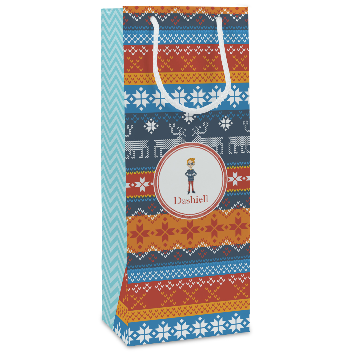 Hipster Winter Design on Custom Wine Gift Bags - Matte