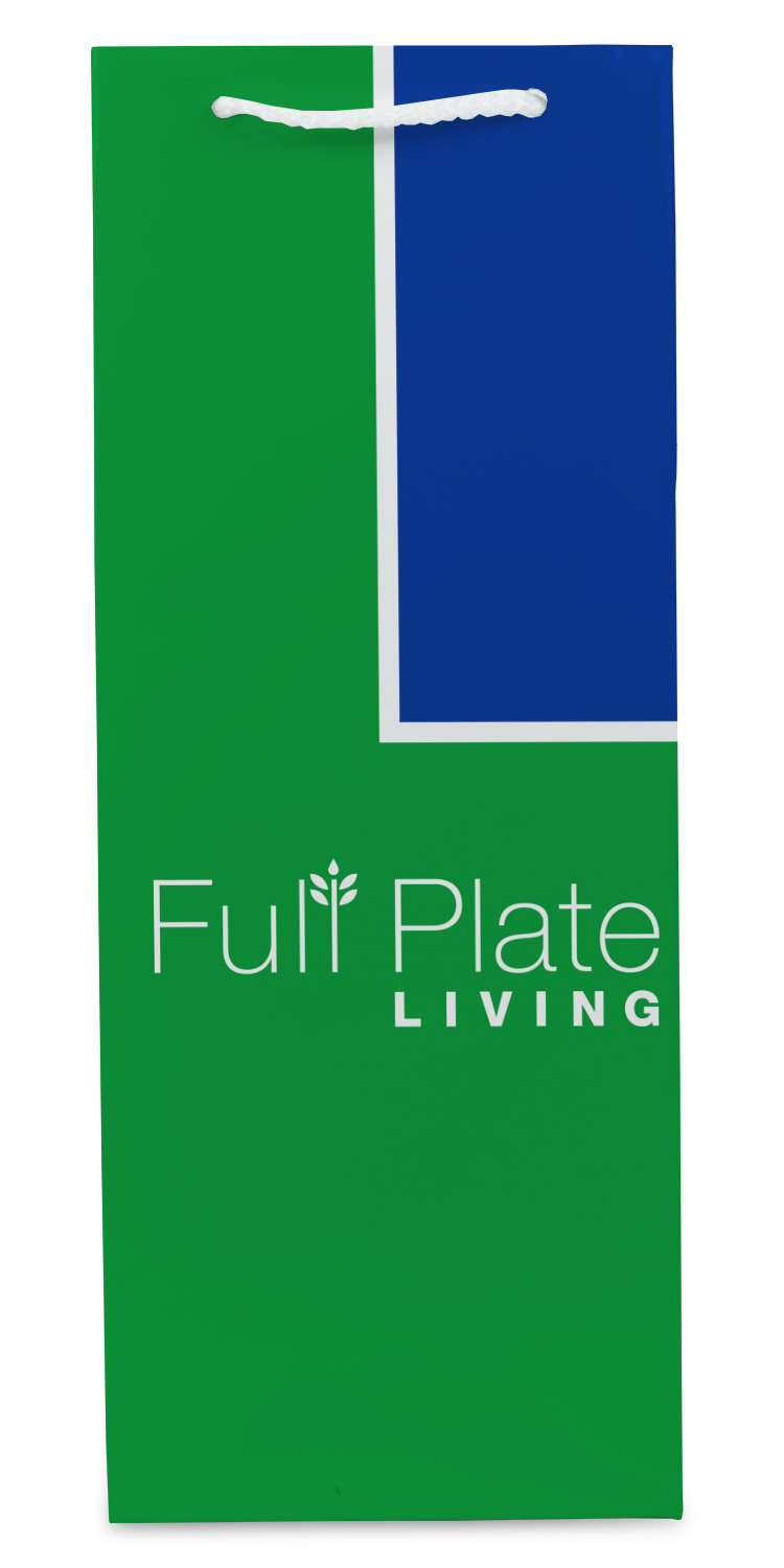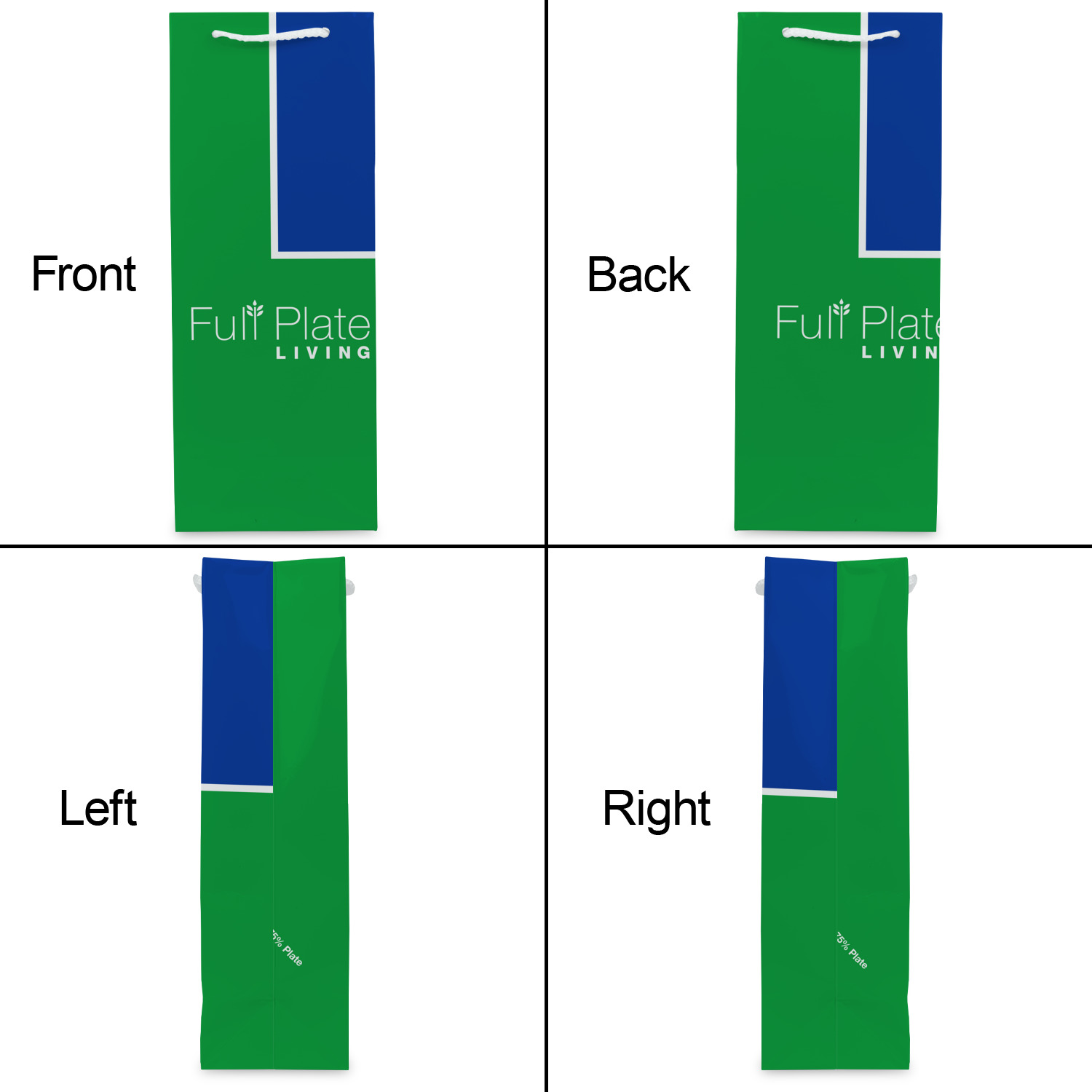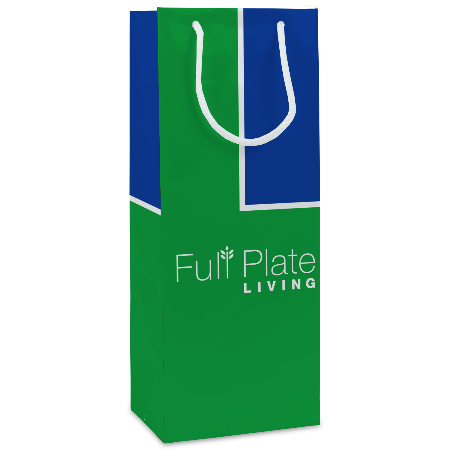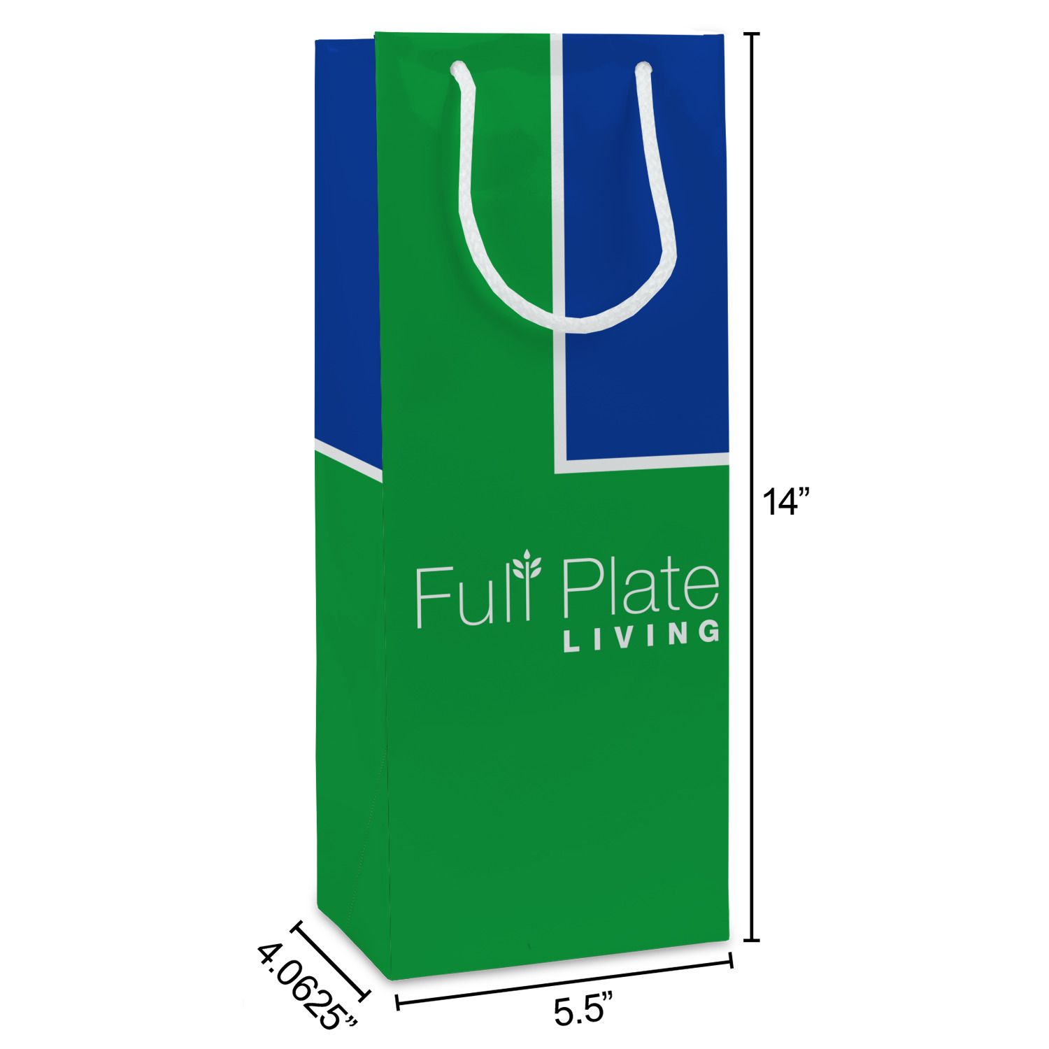 Our wine bags are printed on premium paper. The bags are then cut, scored and folded. The handles and cardstock base it attached. These custom wine bags are printed and made in the USA.