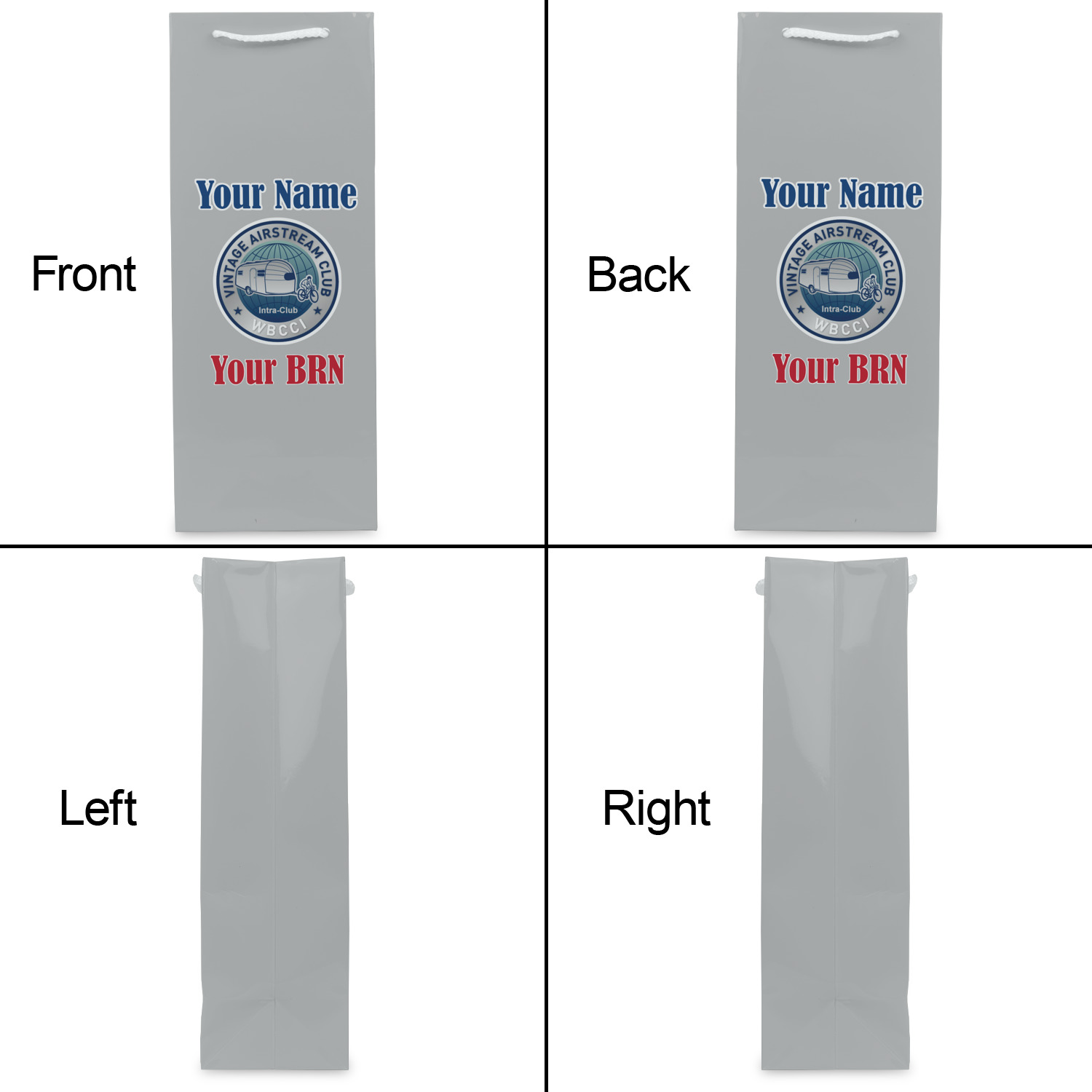 Our wine bags are printed on premium paper. The bags are then cut, scored and folded. The handles and cardstock base it attached. These custom wine bags are printed and made in the USA.