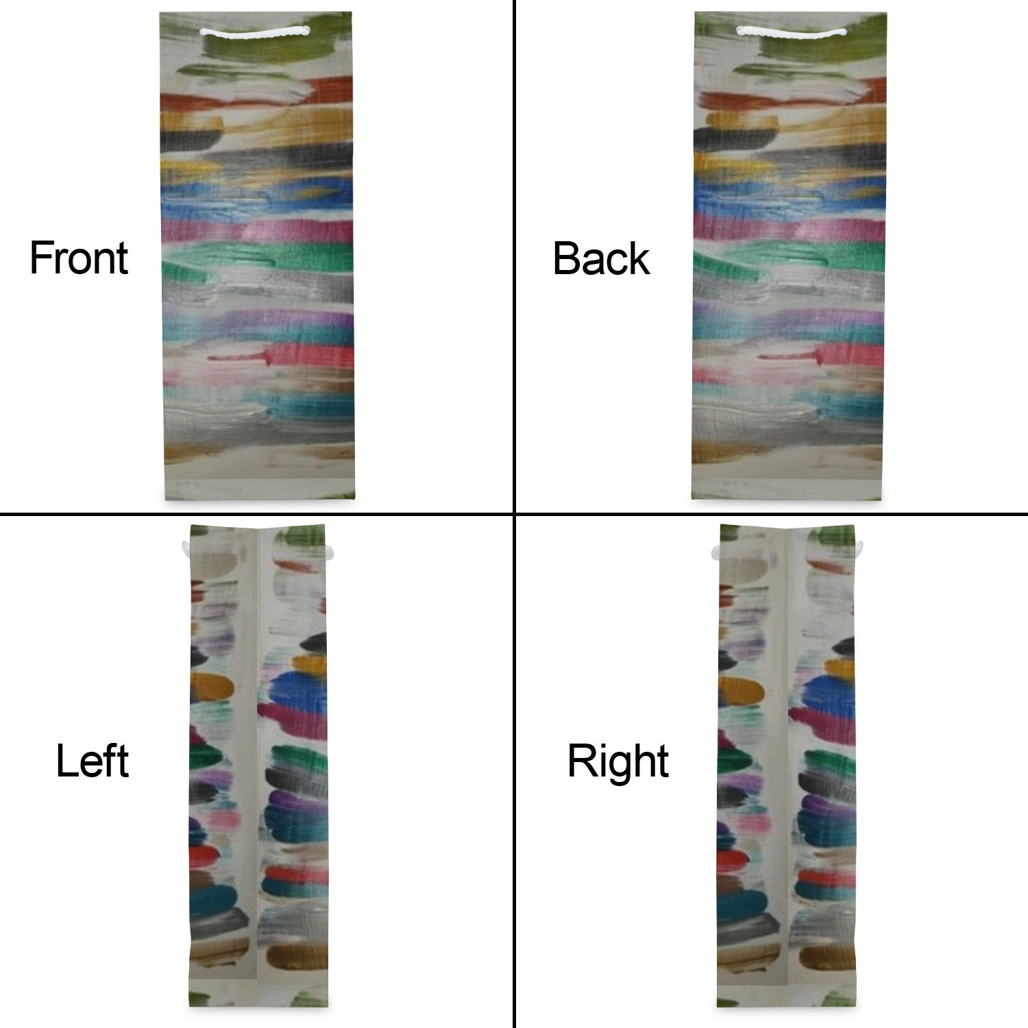 Our wine bags are printed on premium paper. The bags are then cut, scored and folded. The handles and cardstock base it attached. These custom wine bags are printed and made in the USA.