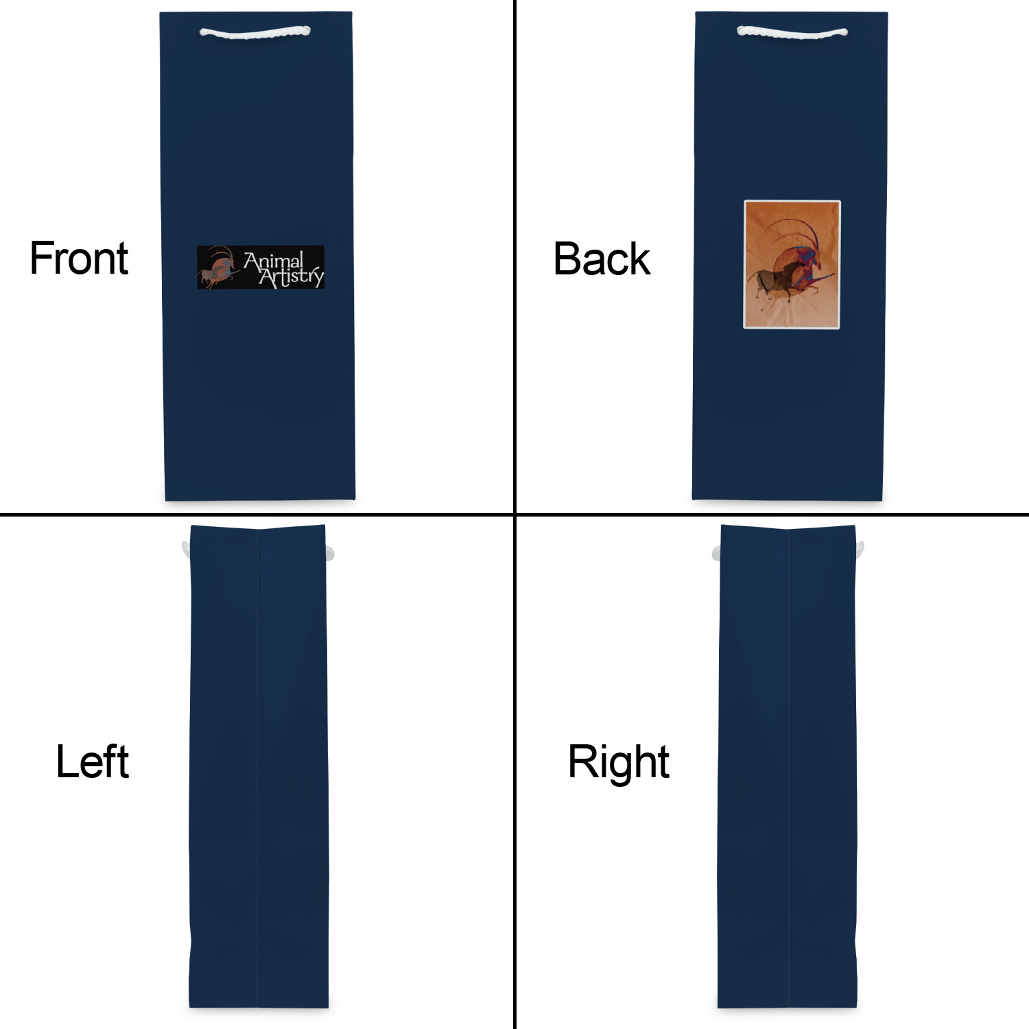 Our wine bags are printed on premium paper. The bags are then cut, scored and folded. The handles and cardstock base it attached. These custom wine bags are printed and made in the USA.