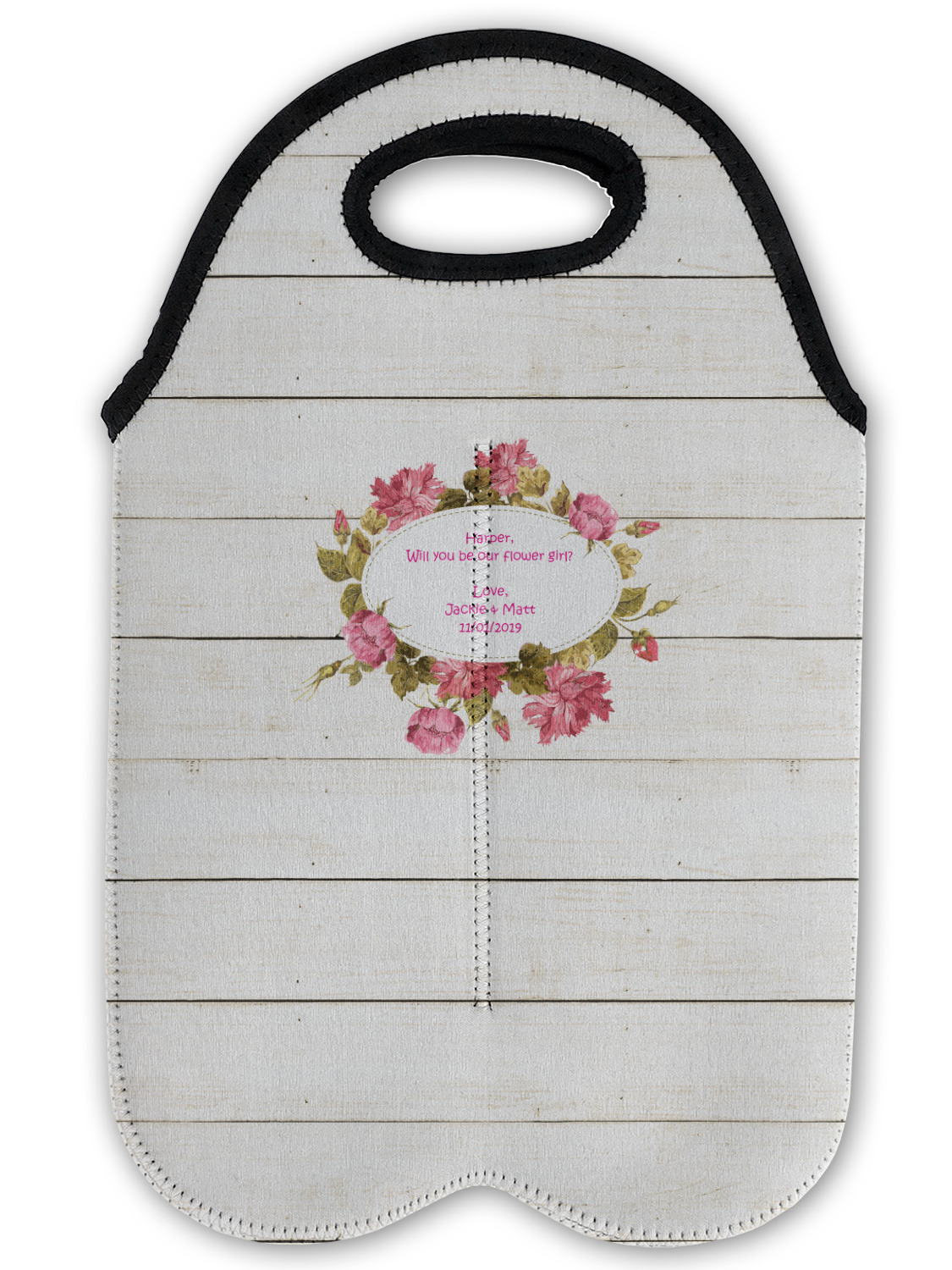 These tote bags are insulated to keep the bottles cold and have a stitched separation down the middle and double handles to keep the two bottles safe and secure during travels.