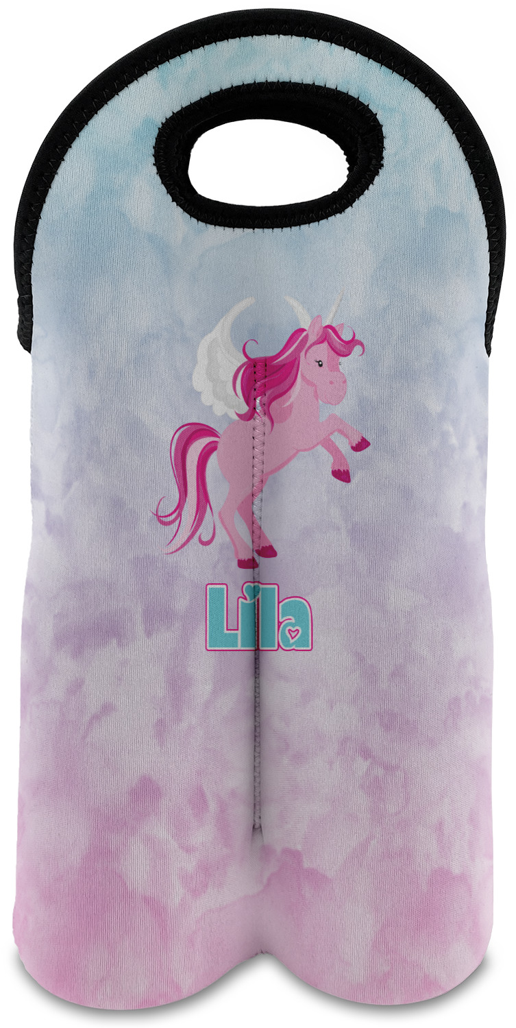 These tote bags are insulated to keep the bottles cold and have a stitched separation down the middle and double handles to keep the two bottles safe and secure during travels.