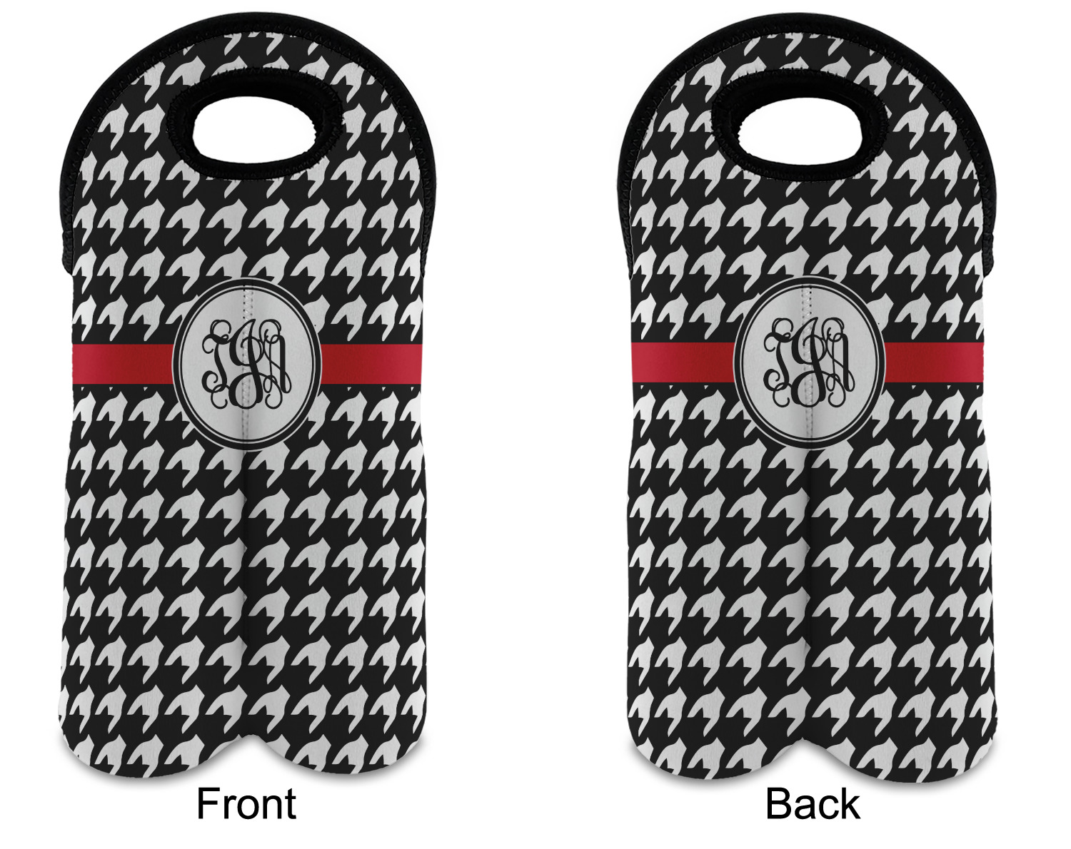 These tote bags are insulated to keep the bottles cold and have a stitched separation down the middle and double handles to keep the two bottles safe and secure during travels.