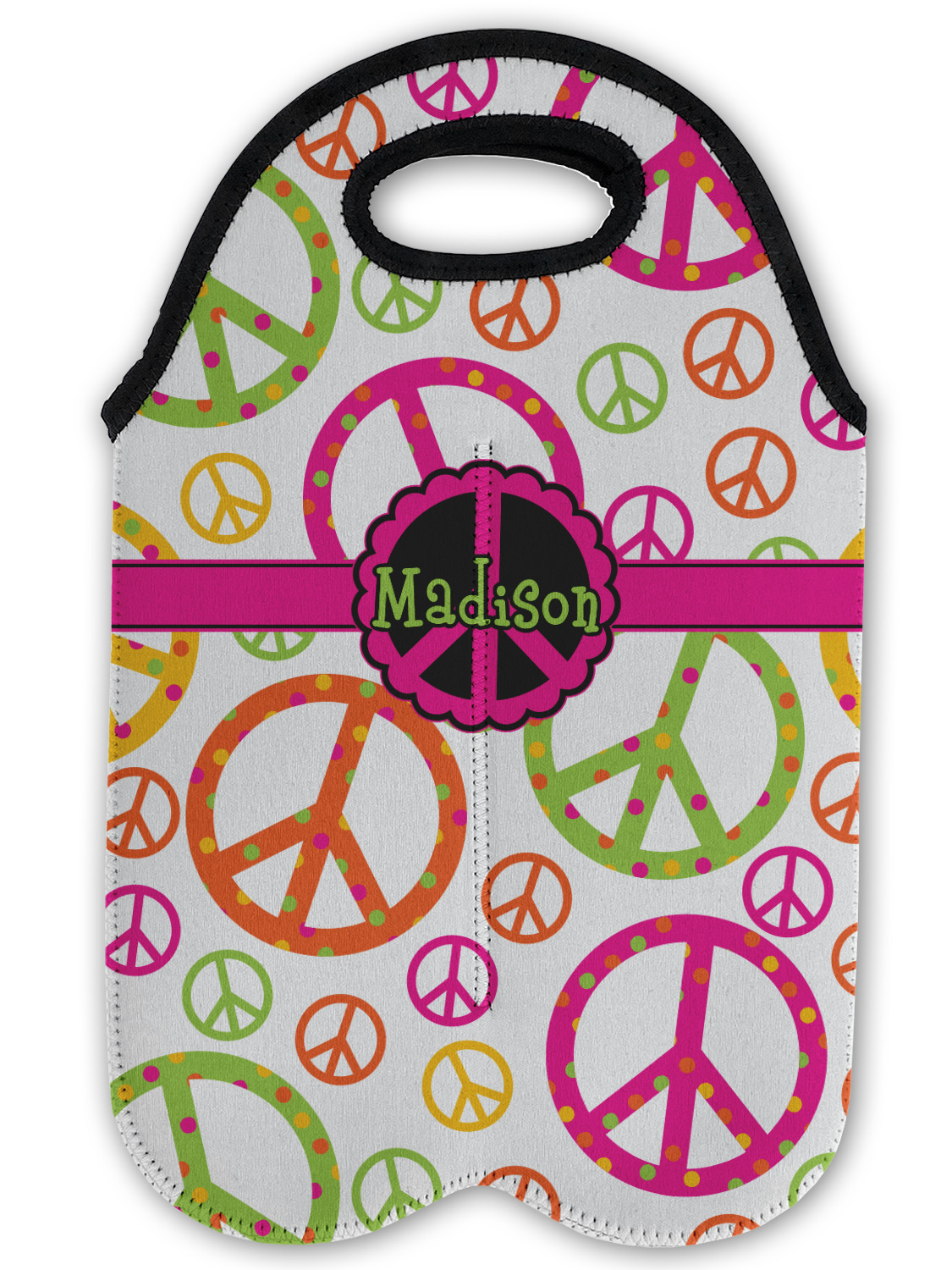 These tote bags are insulated to keep the bottles cold and have a stitched separation down the middle and double handles to keep the two bottles safe and secure during travels.