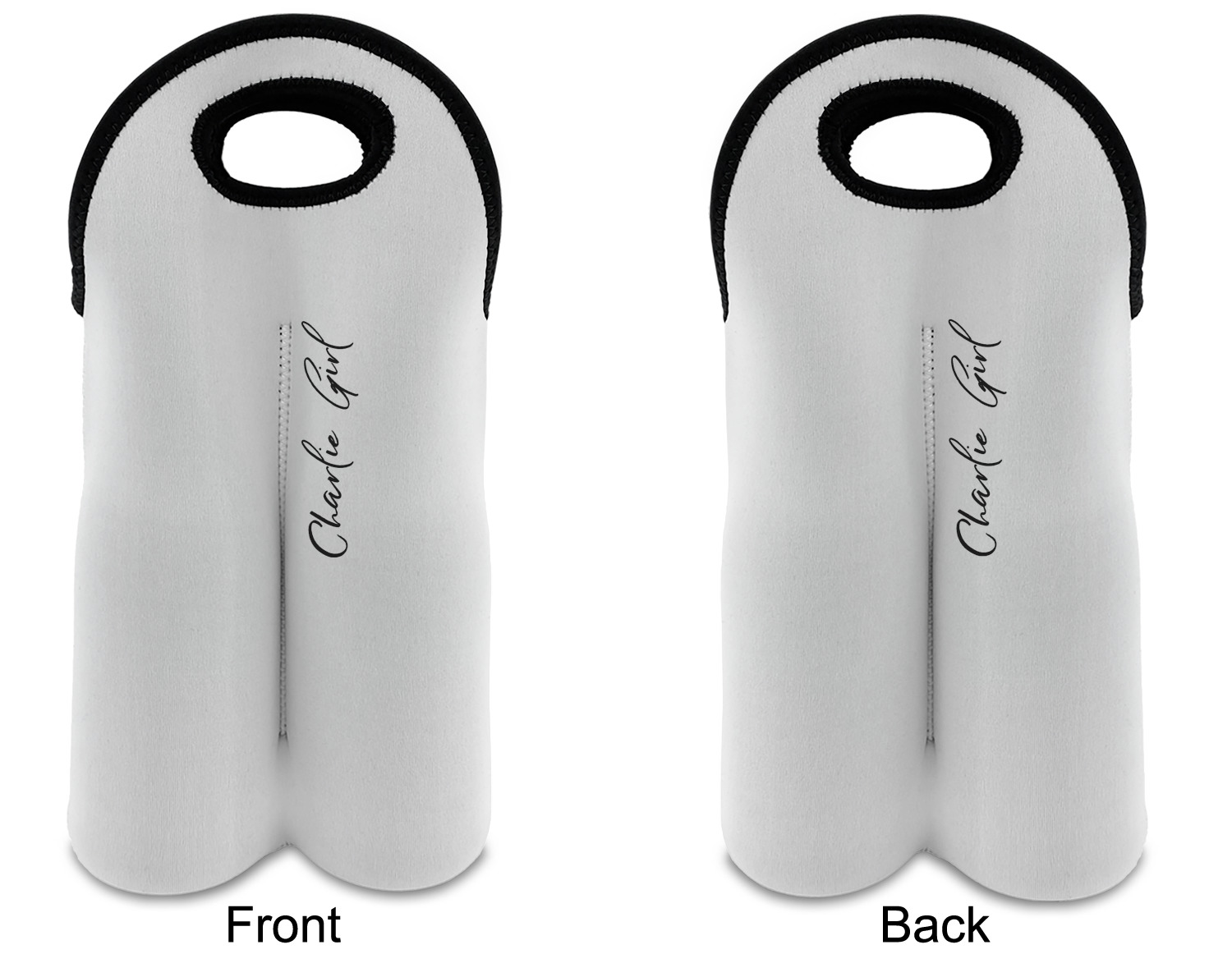 These tote bags are insulated to keep the bottles cold and have a stitched separation down the middle and double handles to keep the two bottles safe and secure during travels.