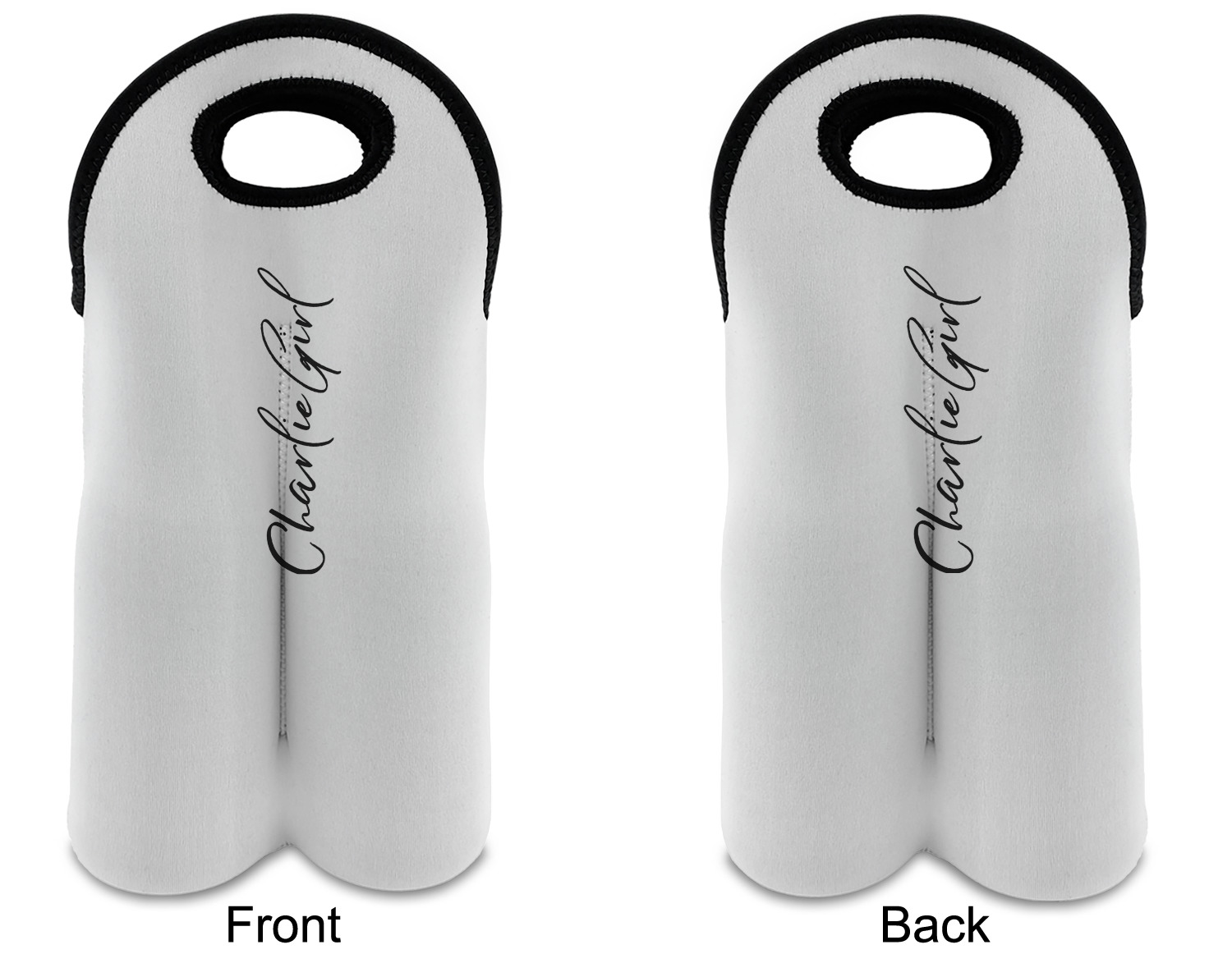These tote bags are insulated to keep the bottles cold and have a stitched separation down the middle and double handles to keep the two bottles safe and secure during travels.