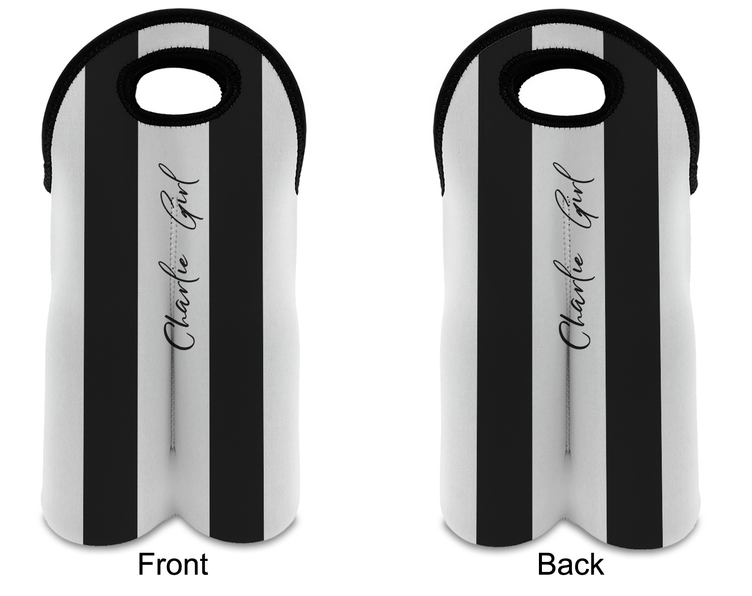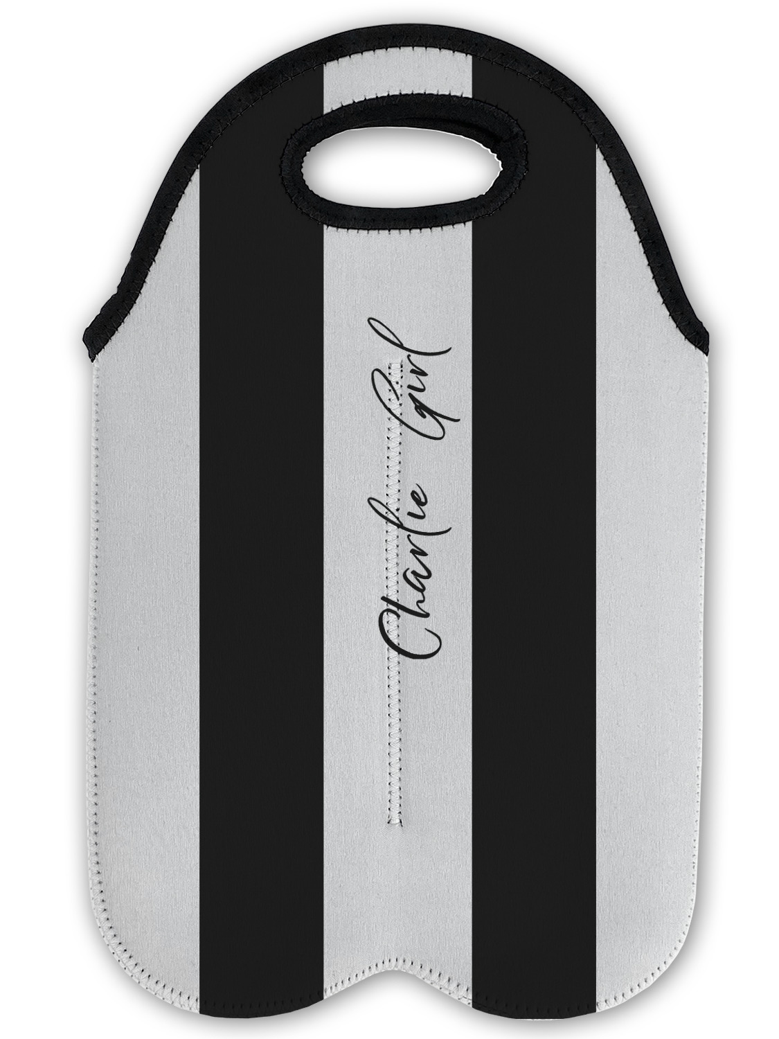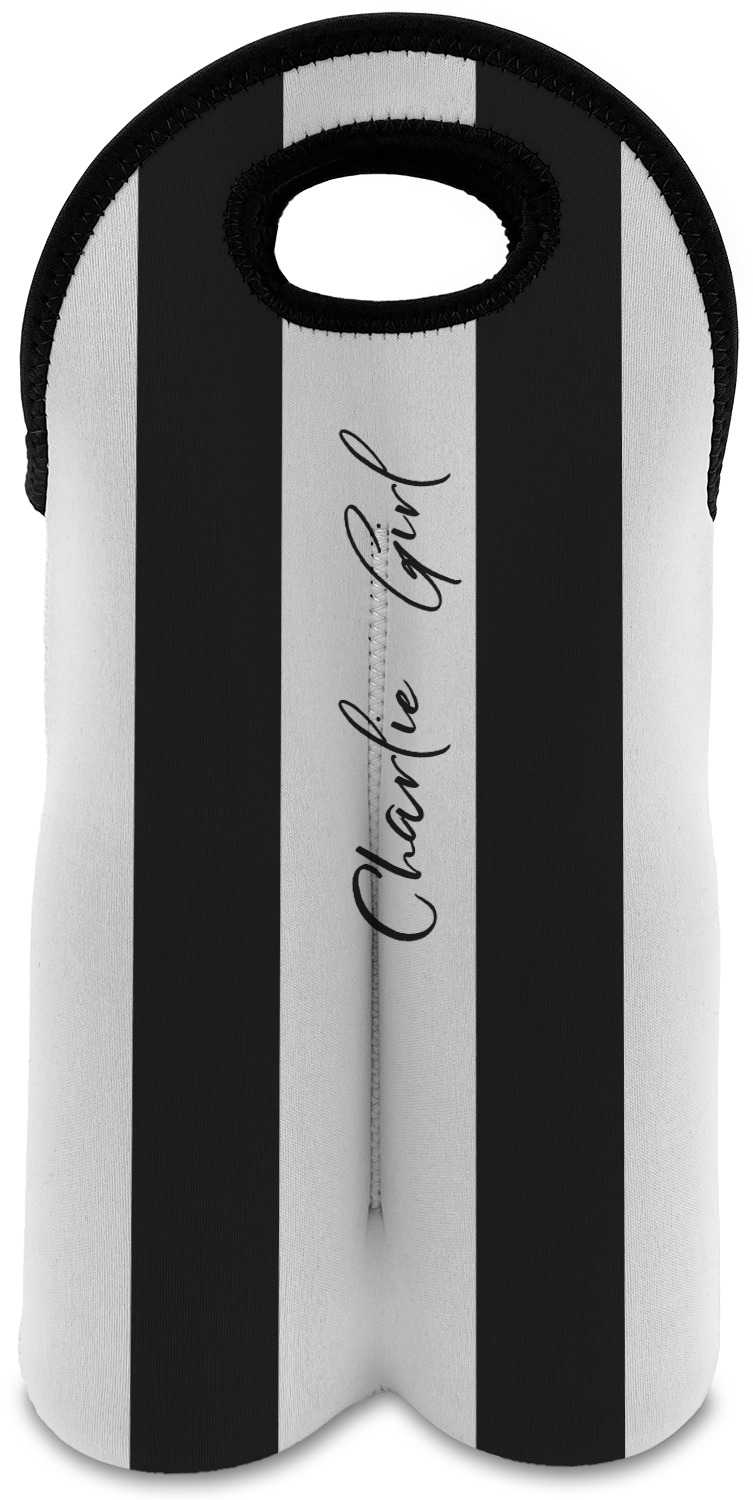 These tote bags are insulated to keep the bottles cold and have a stitched separation down the middle and double handles to keep the two bottles safe and secure during travels.