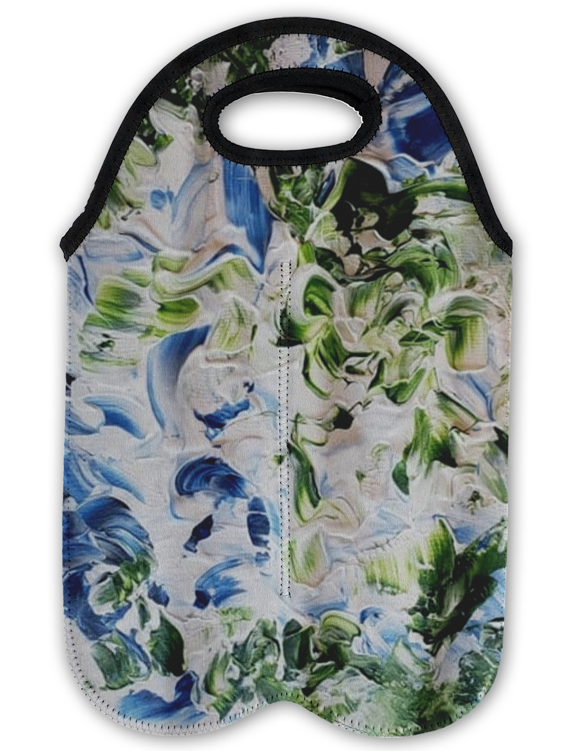 These tote bags are insulated to keep the bottles cold and have a stitched separation down the middle and double handles to keep the two bottles safe and secure during travels.