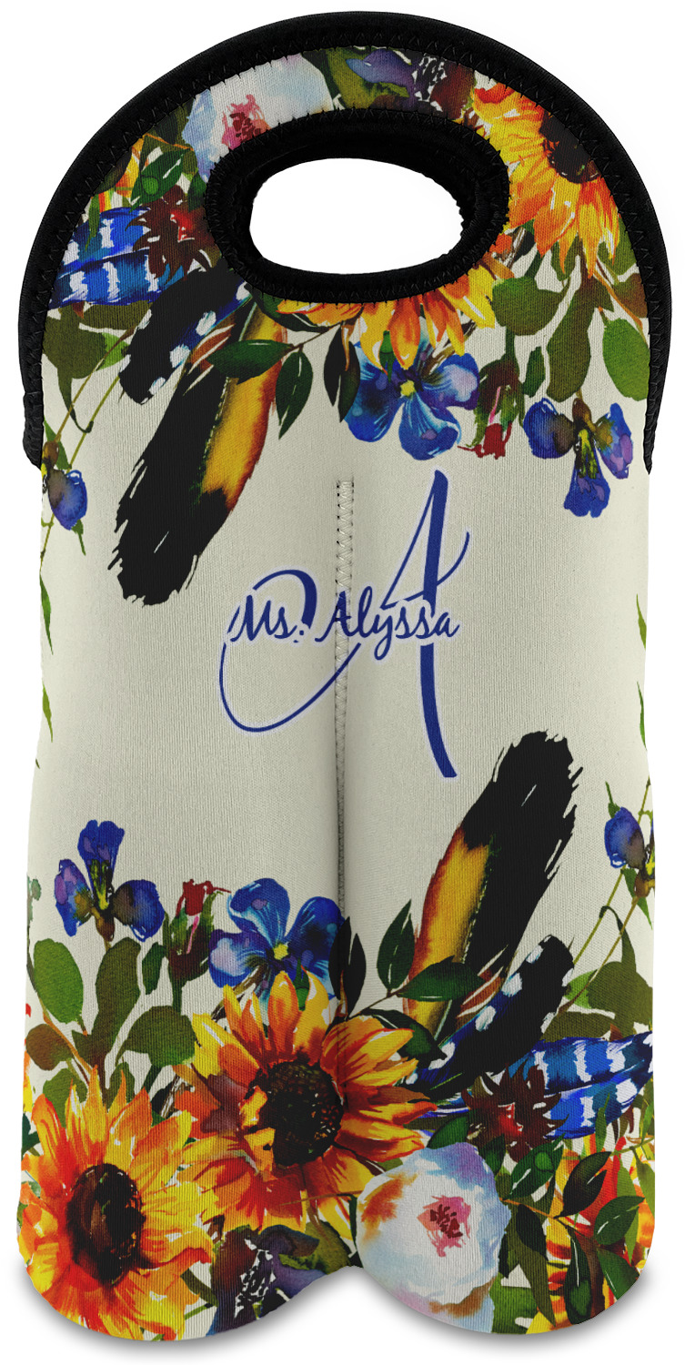 These tote bags are insulated to keep the bottles cold and have a stitched separation down the middle and double handles to keep the two bottles safe and secure during travels.