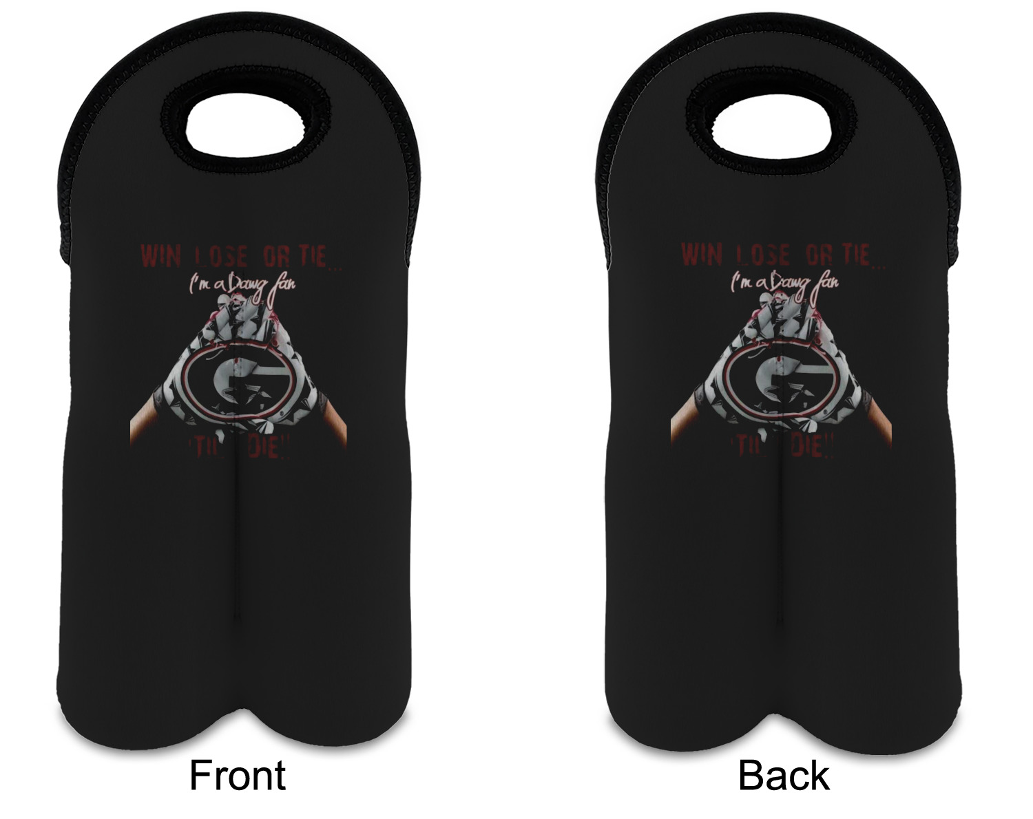 These tote bags are insulated to keep the bottles cold and have a stitched separation down the middle and double handles to keep the two bottles safe and secure during travels.