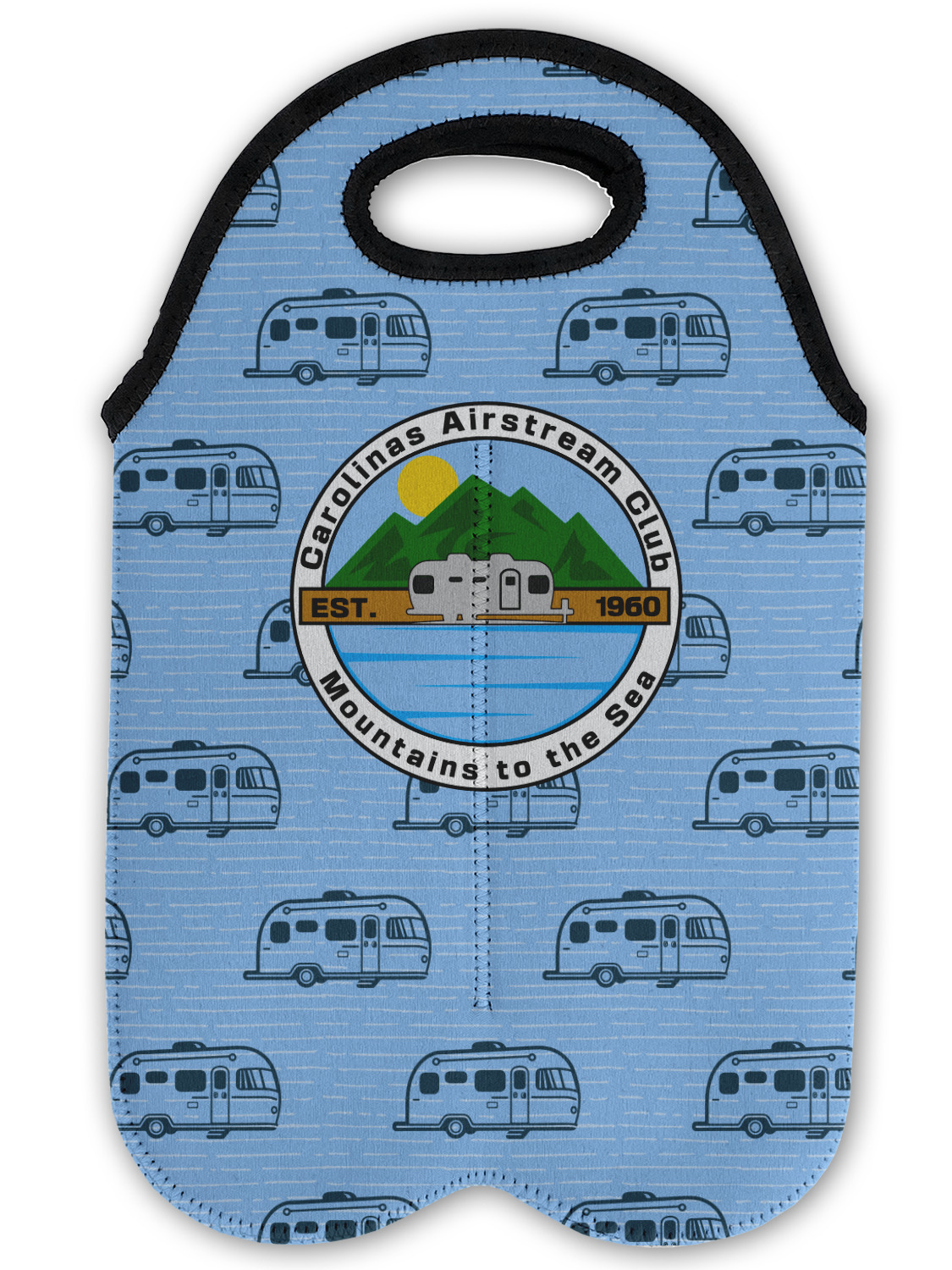 These tote bags are insulated to keep the bottles cold and have a stitched separation down the middle and double handles to keep the two bottles safe and secure during travels.