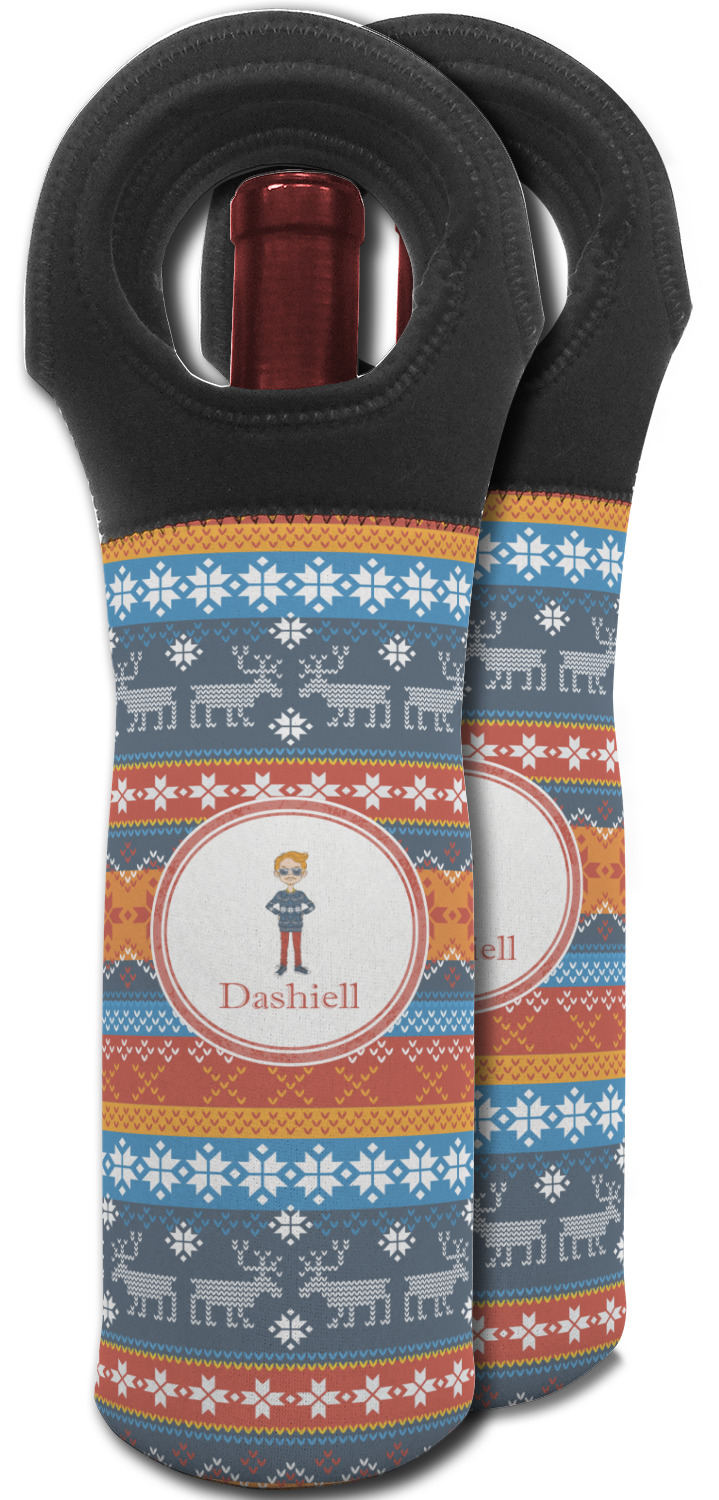 Hipster Winter Design on Custom Wine Tote Bag