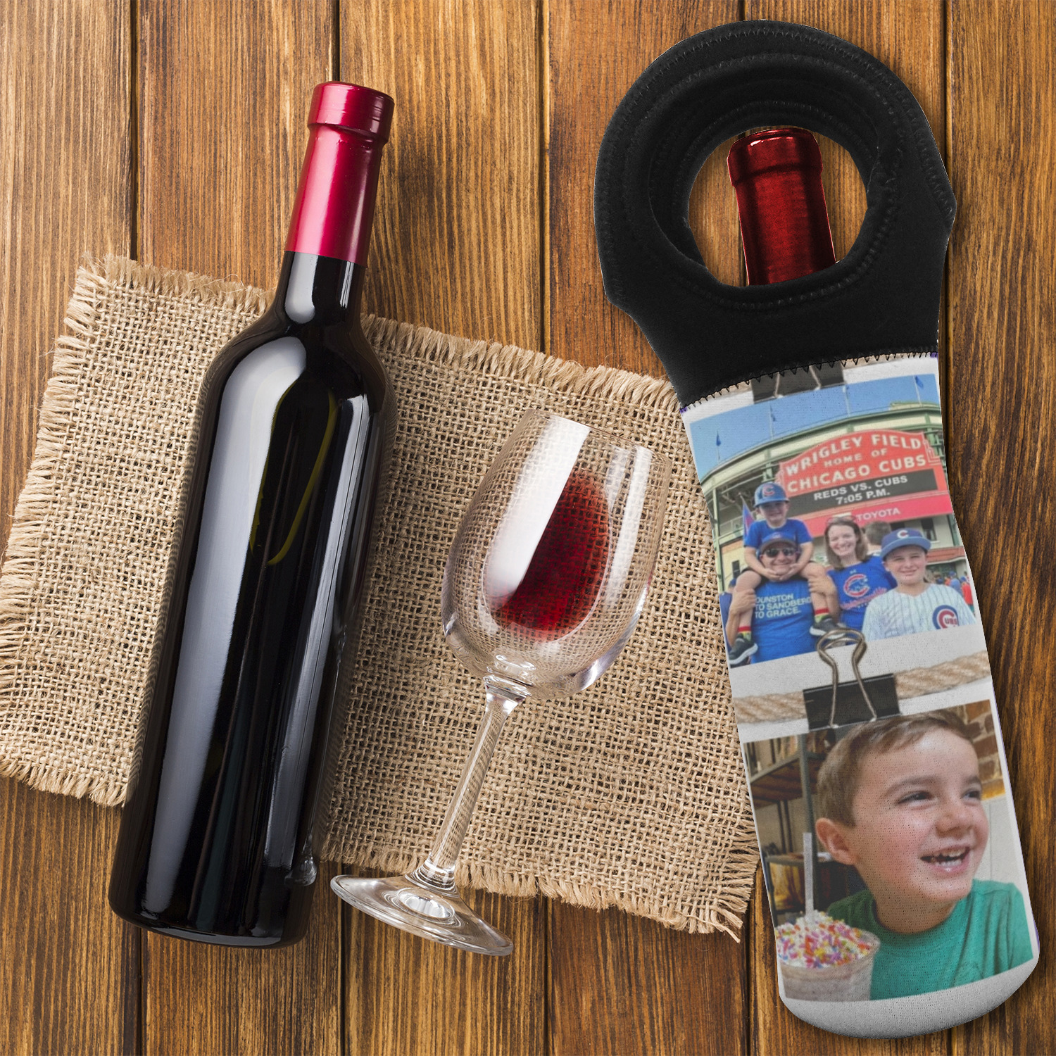 Purchased this wine tote bag with a custom print of our wedding rings and it came out perfect. The clarity of the print is very good. The only thing I will say and it is not a huge problem, but it will only fit actual wine bottles. A champagne bottle will be a tight squeeze...lol!