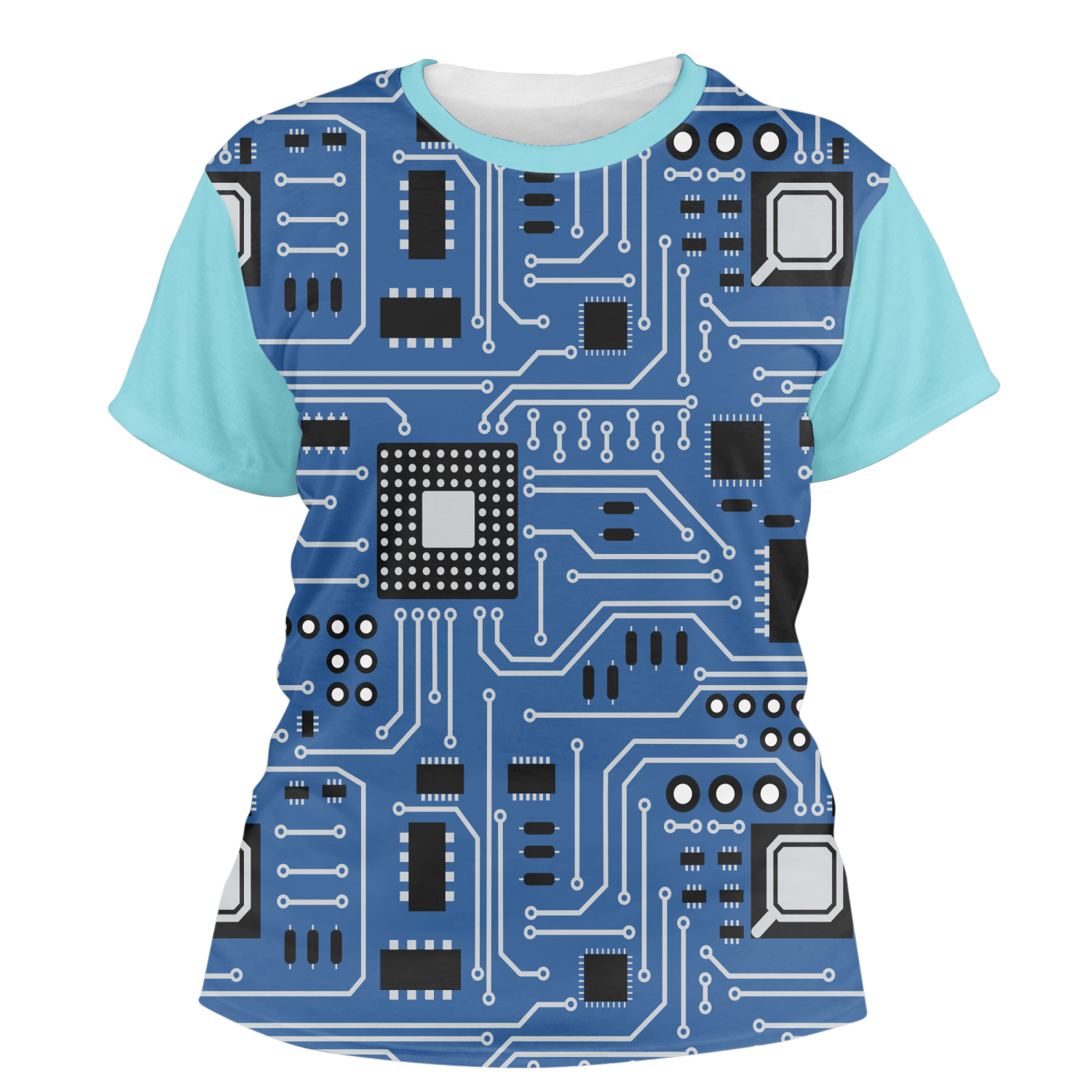 Our womens t-shirts are a lovely jersey knit polyester. They come in 6 different sizes ranging from X-Small to XX-Large. These shirts are your basic comfy crew neck t-shirts that look good on anyone. You are able to personalize the sleeves, front, AND back! Isn't that awesome?! Make everything one color or all different. The choice is yours.