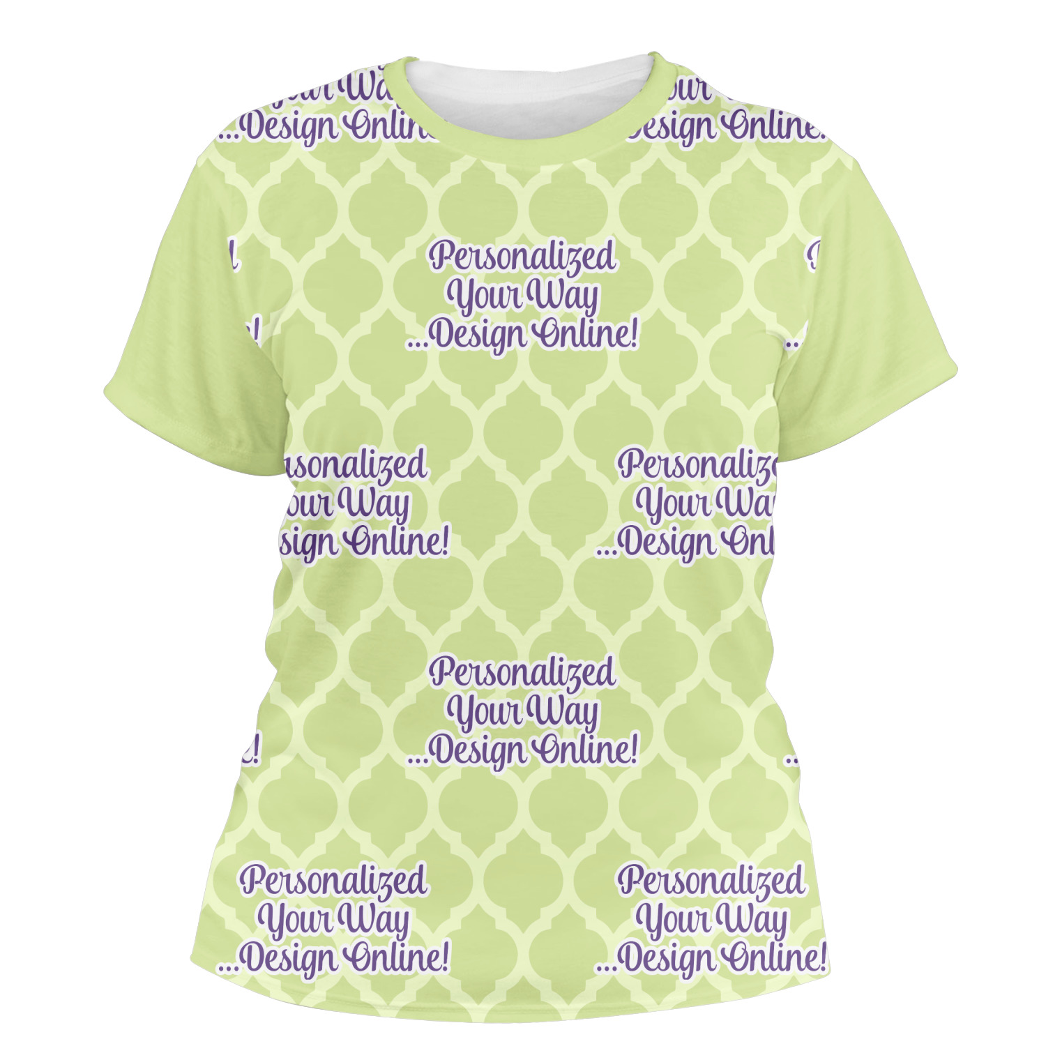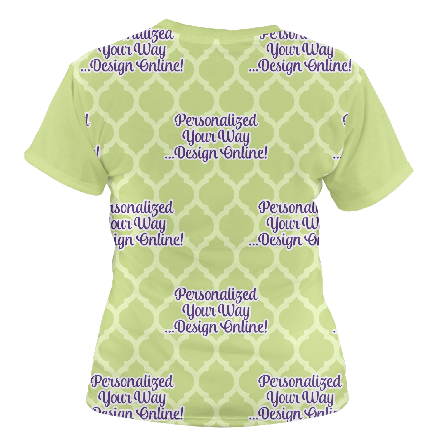 Our womens t-shirts are a lovely jersey knit polyester. They come in 6 different sizes ranging from X-Small to XX-Large. These shirts are your basic comfy crew neck t-shirts that look good on anyone. You are able to personalize the sleeves, front, AND back! Isn't that awesome?! Make everything one color or all different. The choice is yours.