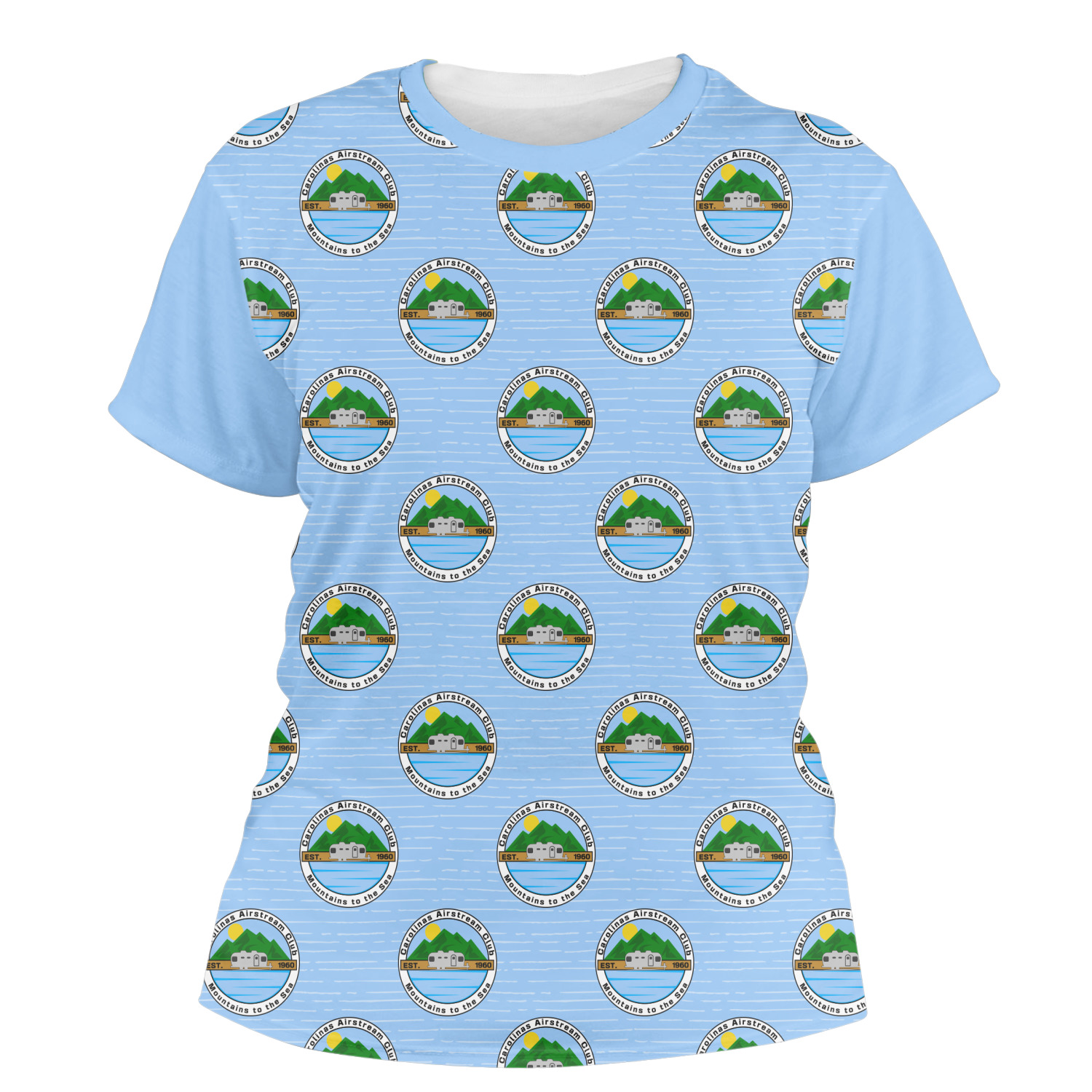 Our womens t-shirts are a lovely jersey knit polyester. They come in 6 different sizes ranging from X-Small to XX-Large. These shirts are your basic comfy crew neck t-shirts that look good on anyone. You are able to personalize the sleeves, front, AND back! Isn't that awesome?! Make everything one color or all different. The choice is yours.