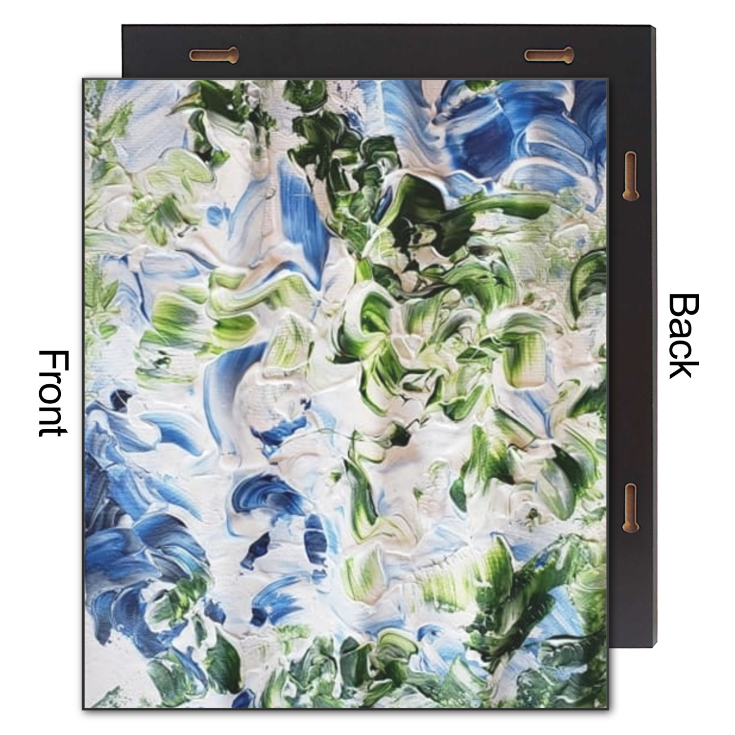 The back of the wood print has 2 keyhole slots on the two sides for hanging both in landscape, as well as portrait mode.