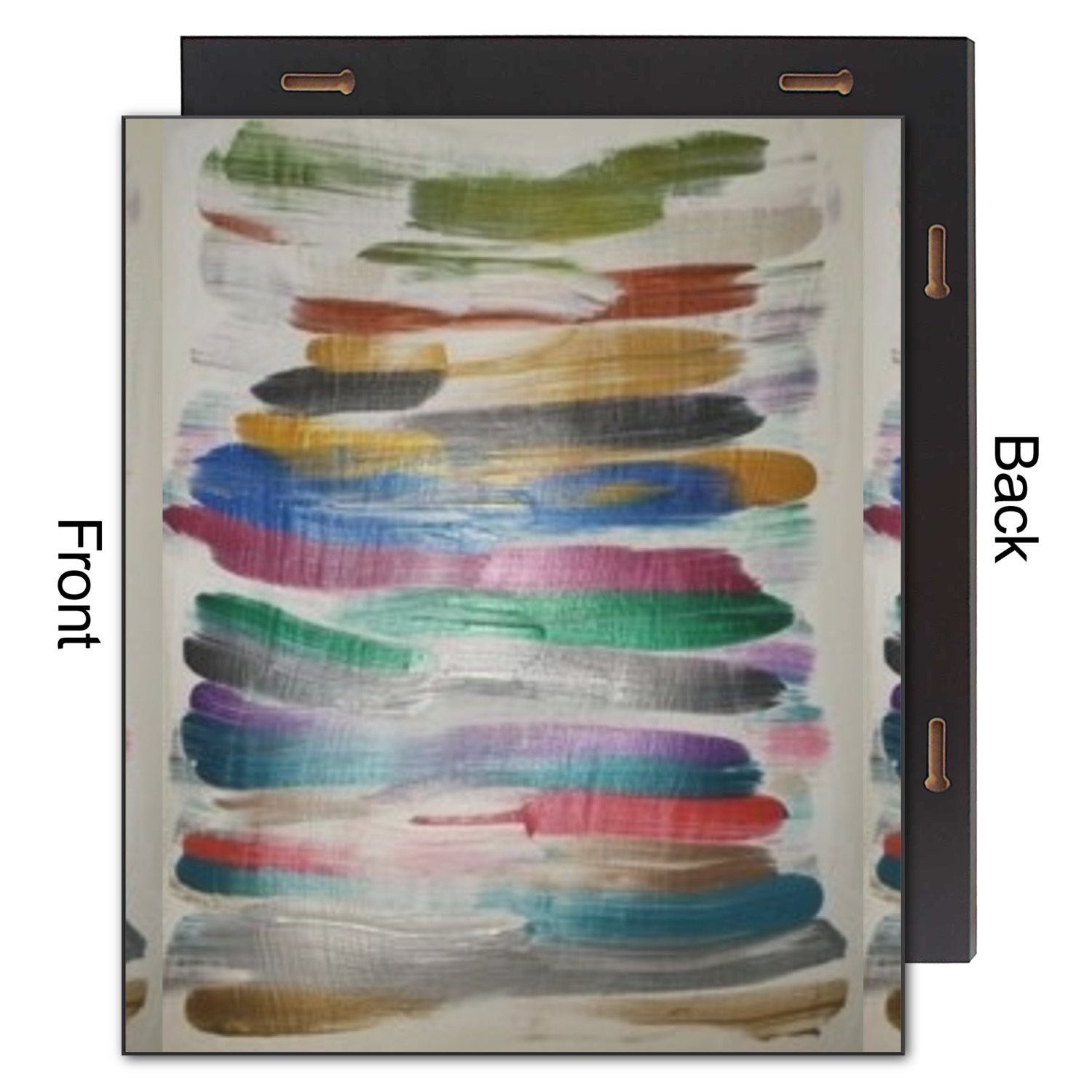 The back of the wood print has 2 keyhole slots on the two sides for hanging both in landscape, as well as portrait mode.