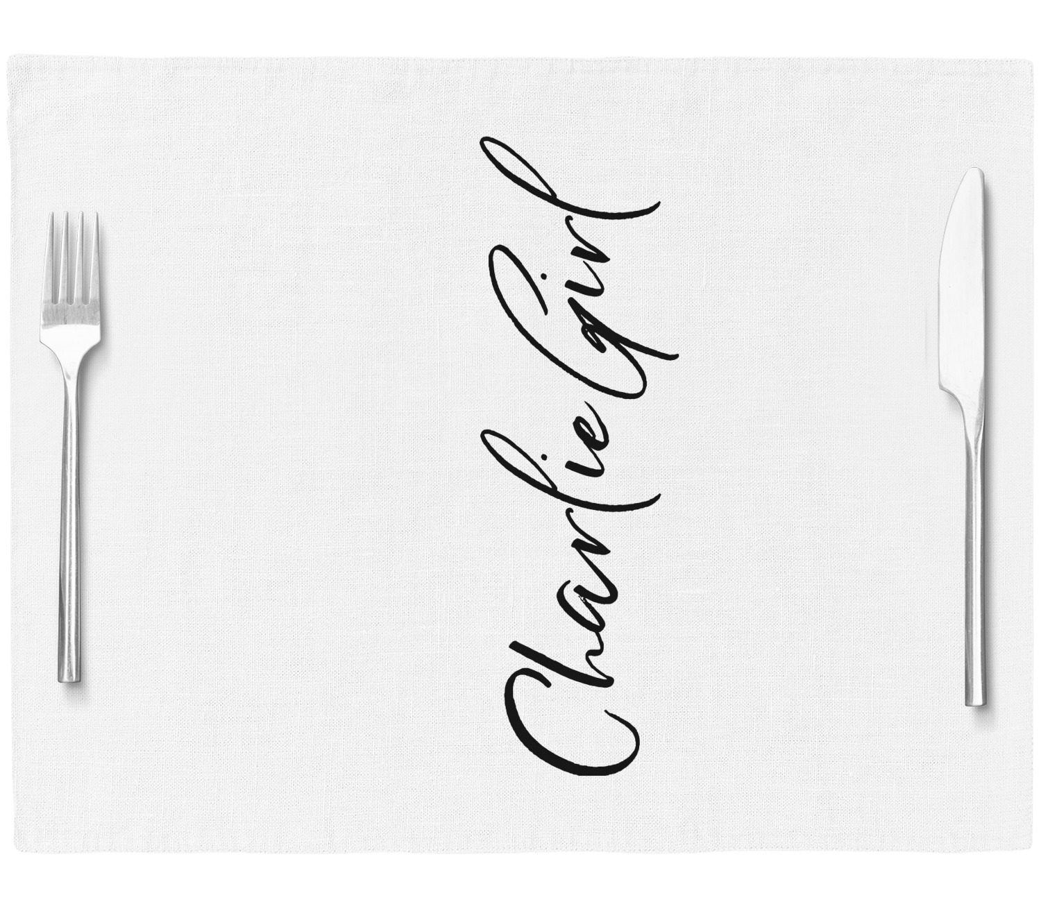 Each of our table mats are a poly twill material with woven burlap detailing. This creates a soft, quality placemat for us to fully print your personalized design across. The woven twill also adds a wrinkle-free surface to set your table! Each customizable placemat is a rectangle shape measuring at approximately 13 x 18 and printed here in the USA.