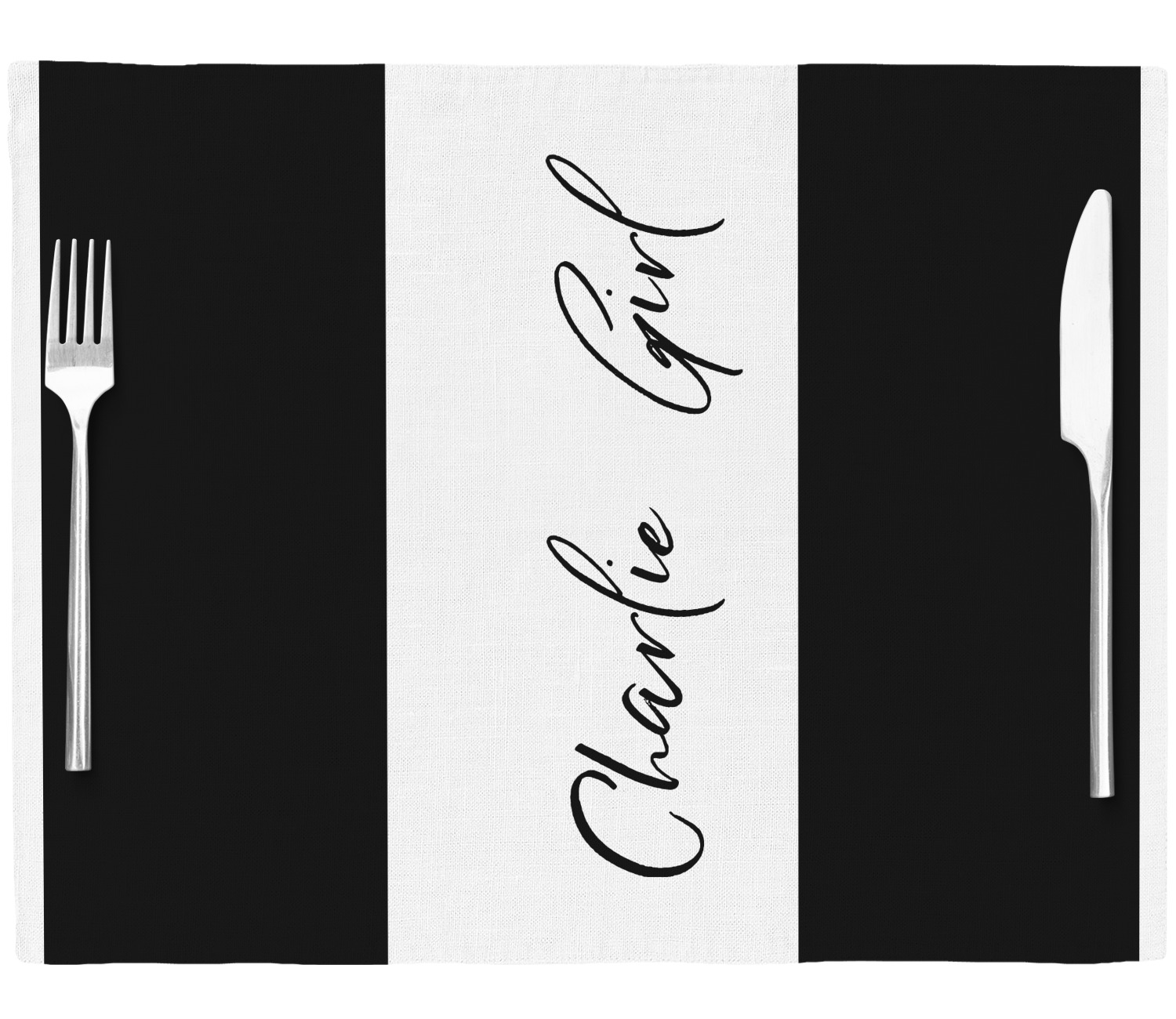 Each of our table mats are a poly twill material with woven burlap detailing. This creates a soft, quality placemat for us to fully print your personalized design across. The woven twill also adds a wrinkle-free surface to set your table! Each customizable placemat is a rectangle shape measuring at approximately 13 x 18 and printed here in the USA.
