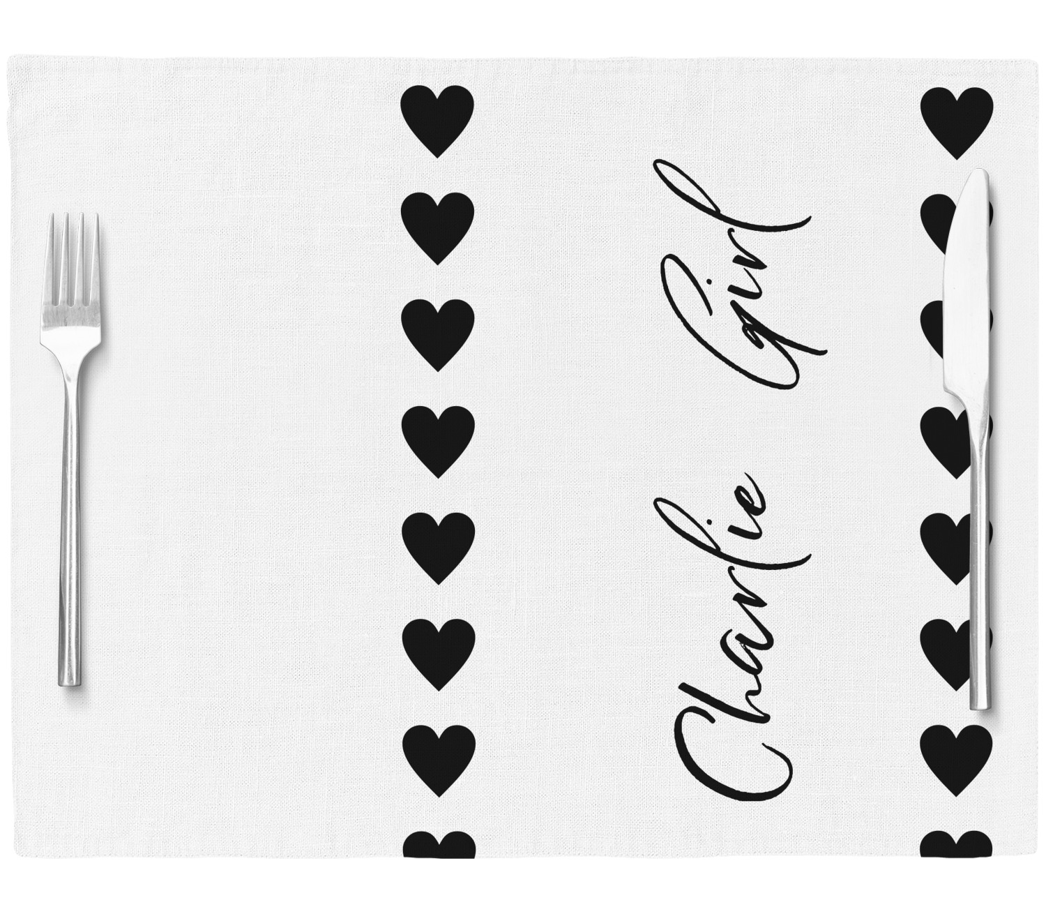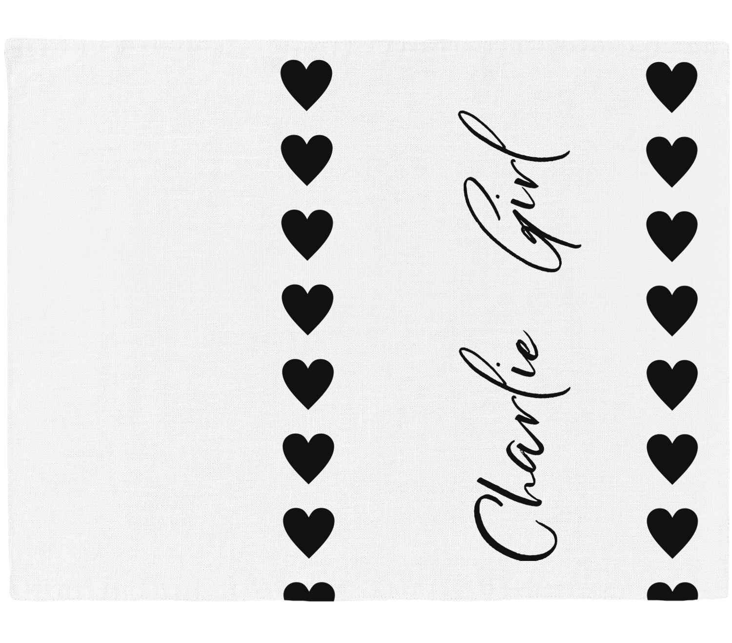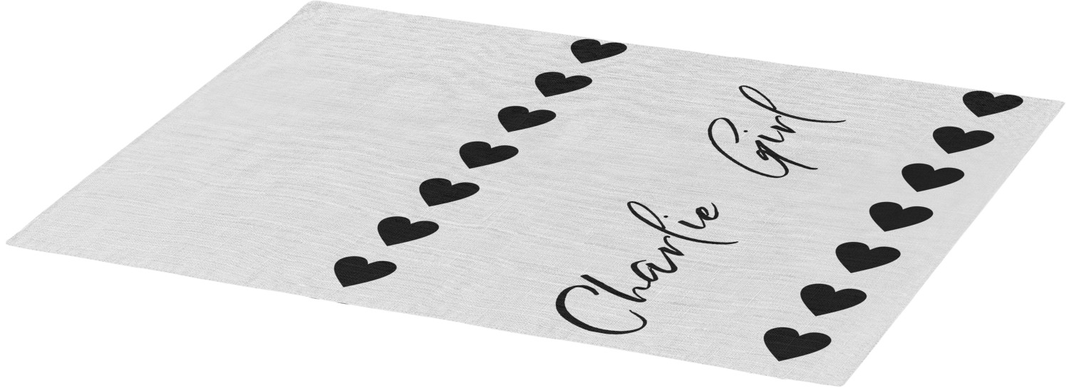 Each of our table mats are a poly twill material with woven burlap detailing. This creates a soft, quality placemat for us to fully print your personalized design across. The woven twill also adds a wrinkle-free surface to set your table! Each customizable placemat is a rectangle shape measuring at approximately 13 x 18 and printed here in the USA.