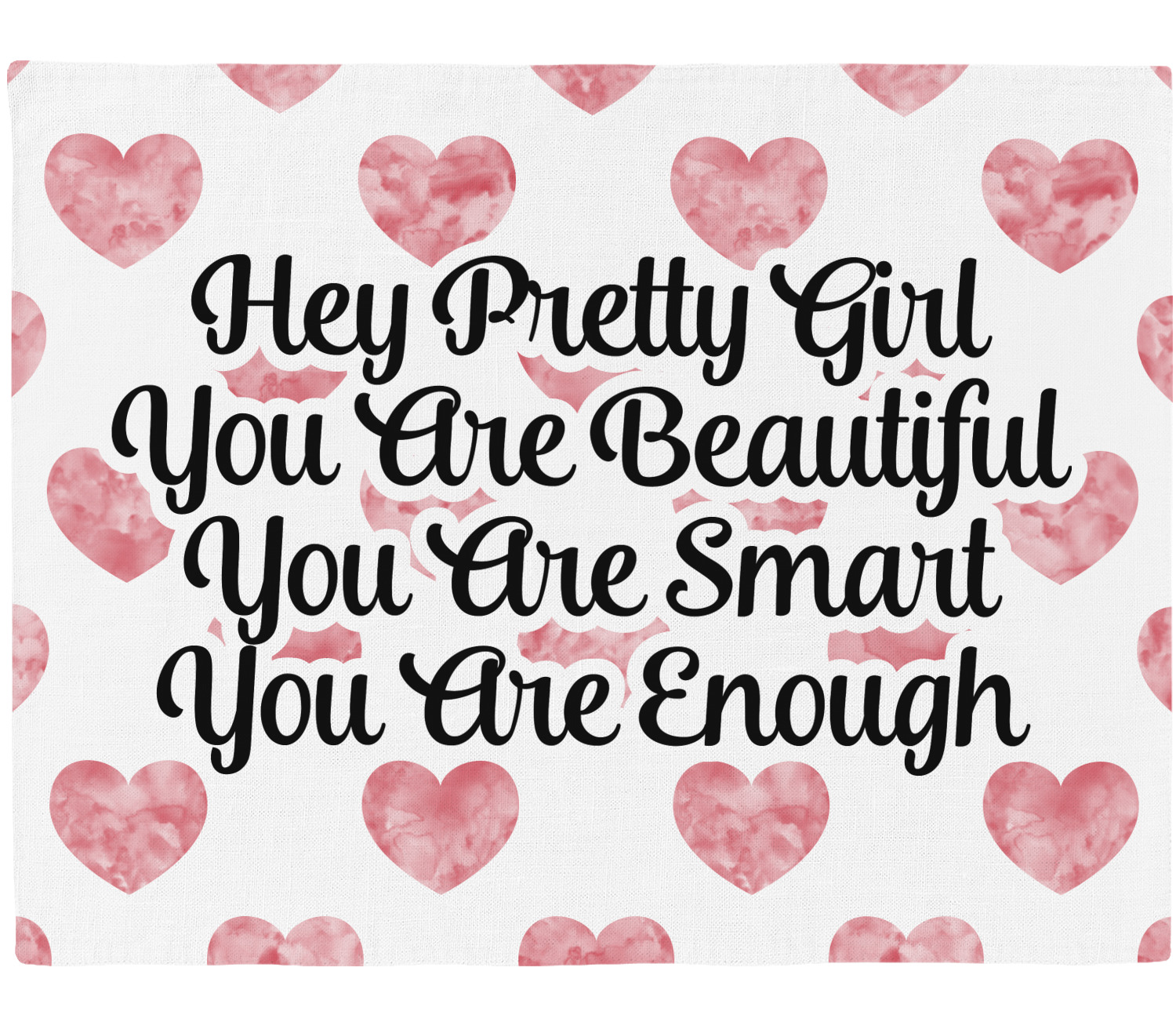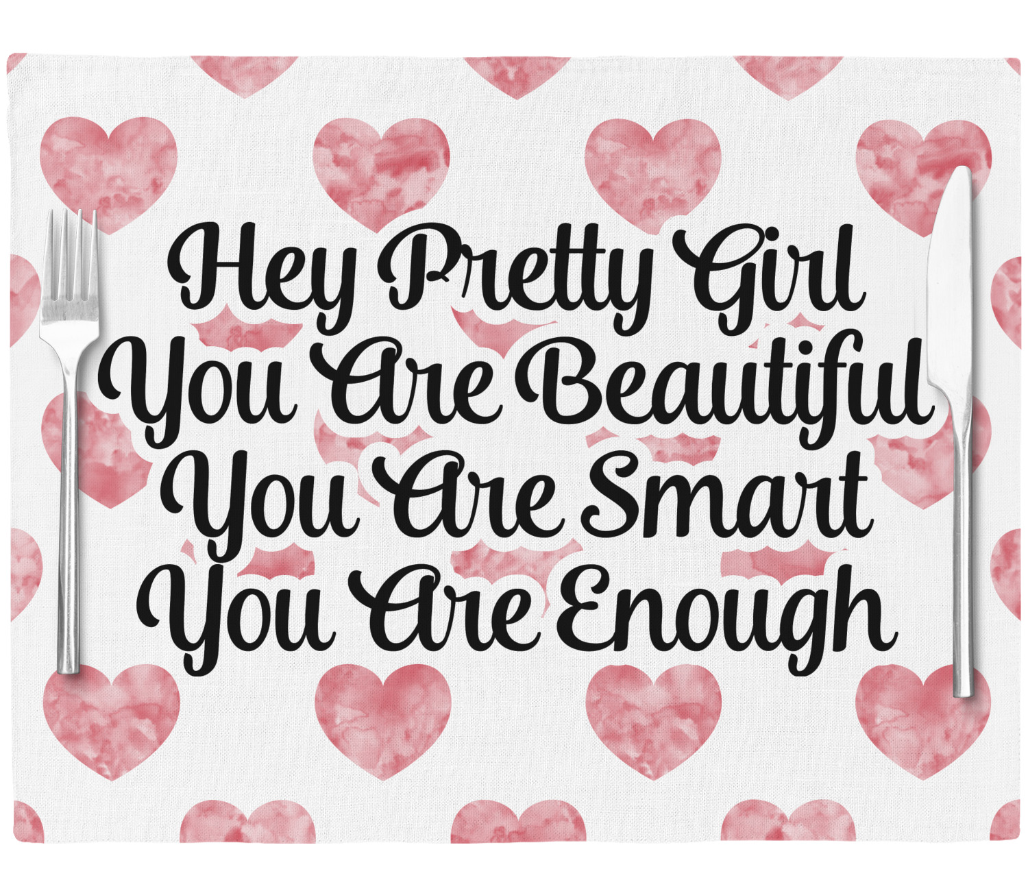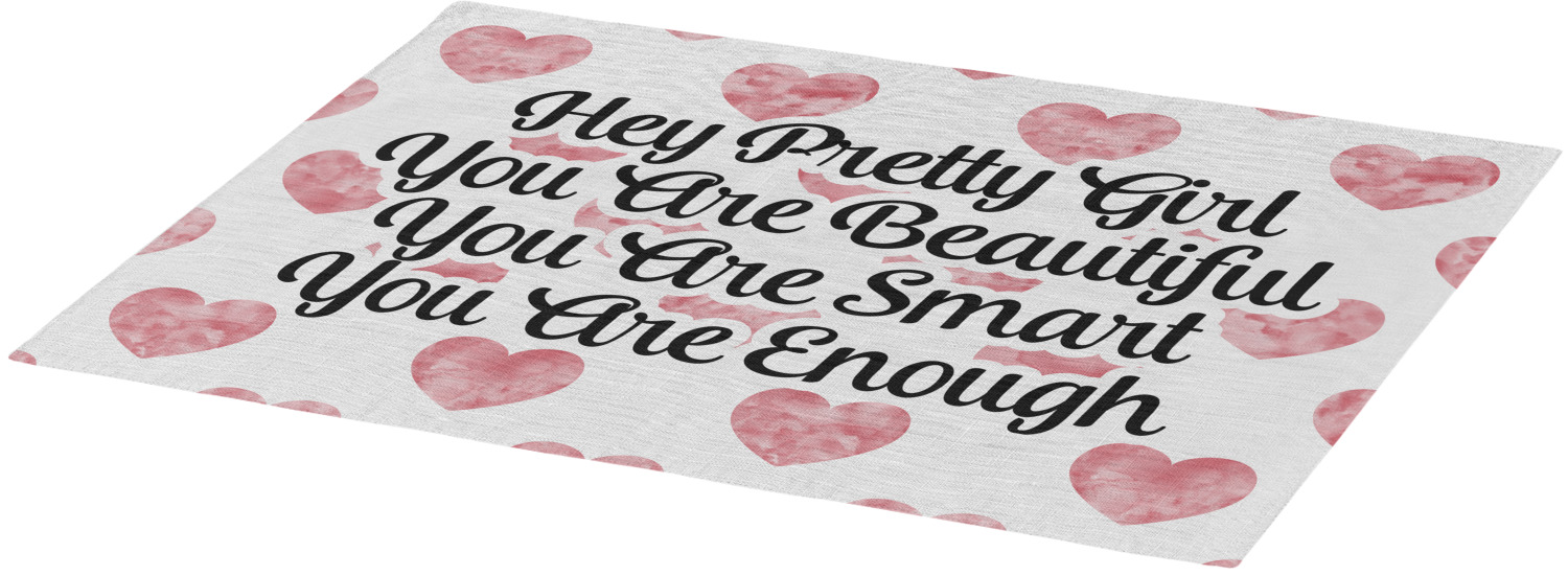 Each of our table mats are a poly twill material with woven burlap detailing. This creates a soft, quality placemat for us to fully print your personalized design across. The woven twill also adds a wrinkle-free surface to set your table! Each customizable placemat is a rectangle shape measuring at approximately 13 x 18 and printed here in the USA.