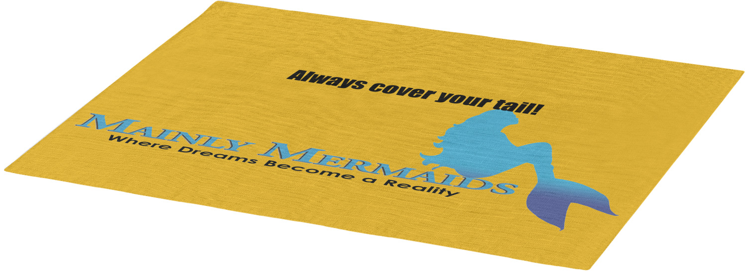 Each of our table mats are a poly twill material with woven burlap detailing. This creates a soft, quality placemat for us to fully print your personalized design across. The woven twill also adds a wrinkle-free surface to set your table! Each customizable placemat is a rectangle shape measuring at approximately 13 x 18 and printed here in the USA.