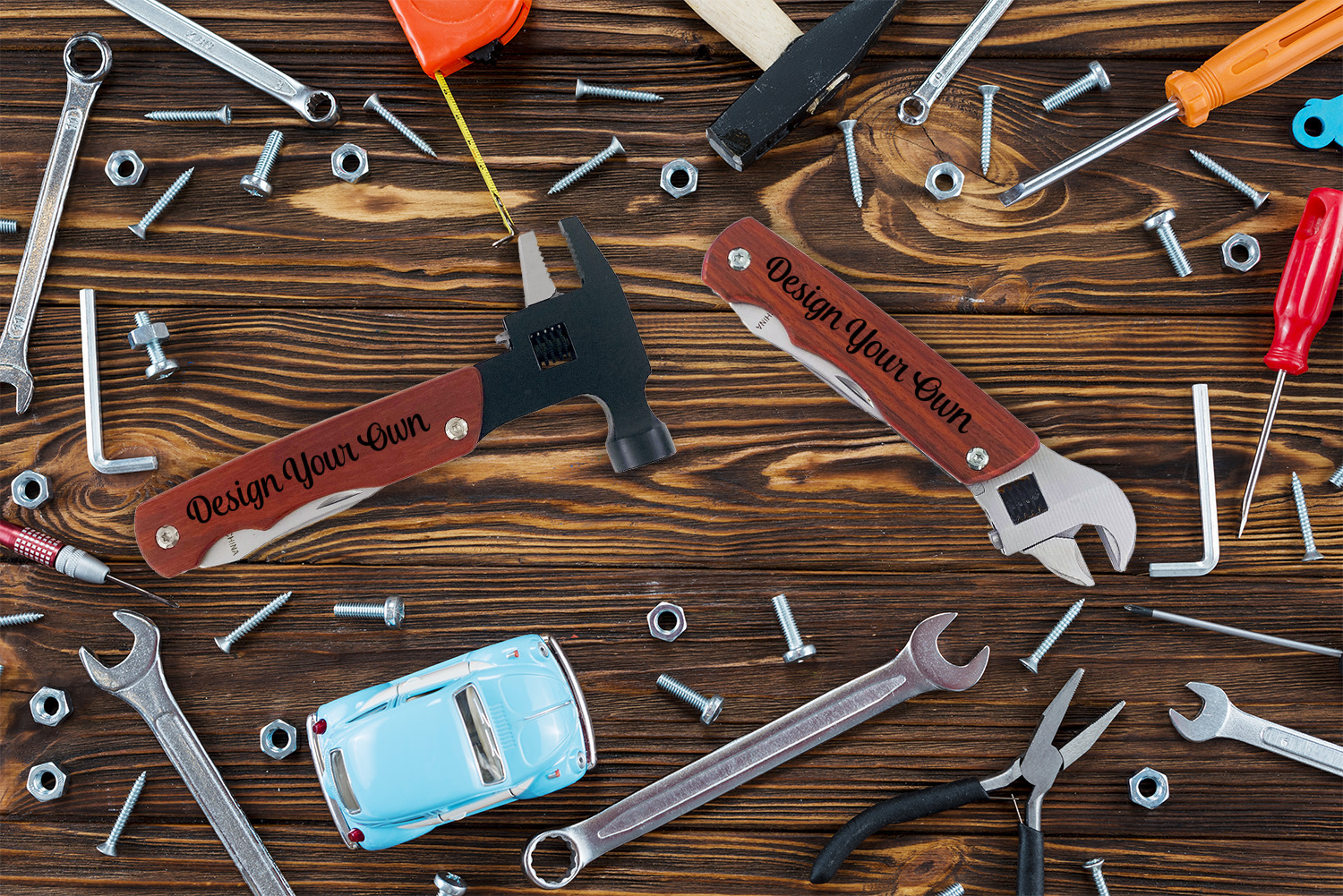 An ideal customized gift for that handy person in your life. This multi-tool is perfect as a tool to carry for the hiker, biker, fisherman, hunter, camper or anyone else on the go.