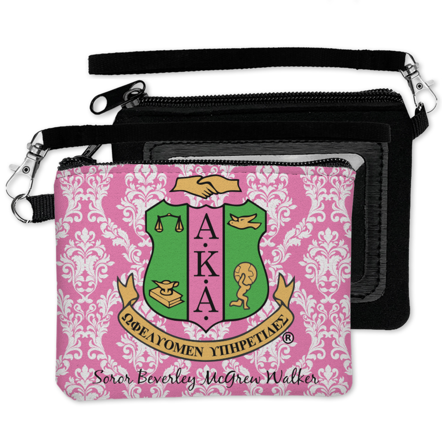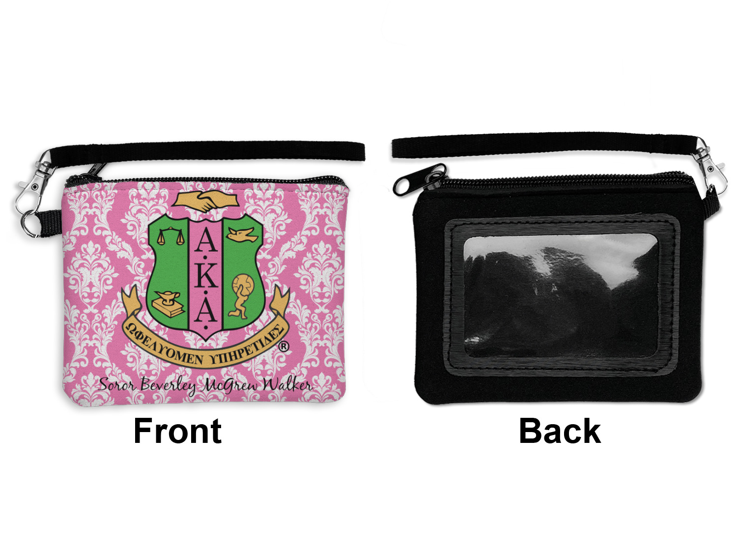This personalized ID holder wallet comes with an ID window thats separated from the main compartment. With a zipper closure and a lobster claw clasp keychain to stay on your wrist, youll never have to worry about losing your contents or your entire wallet.