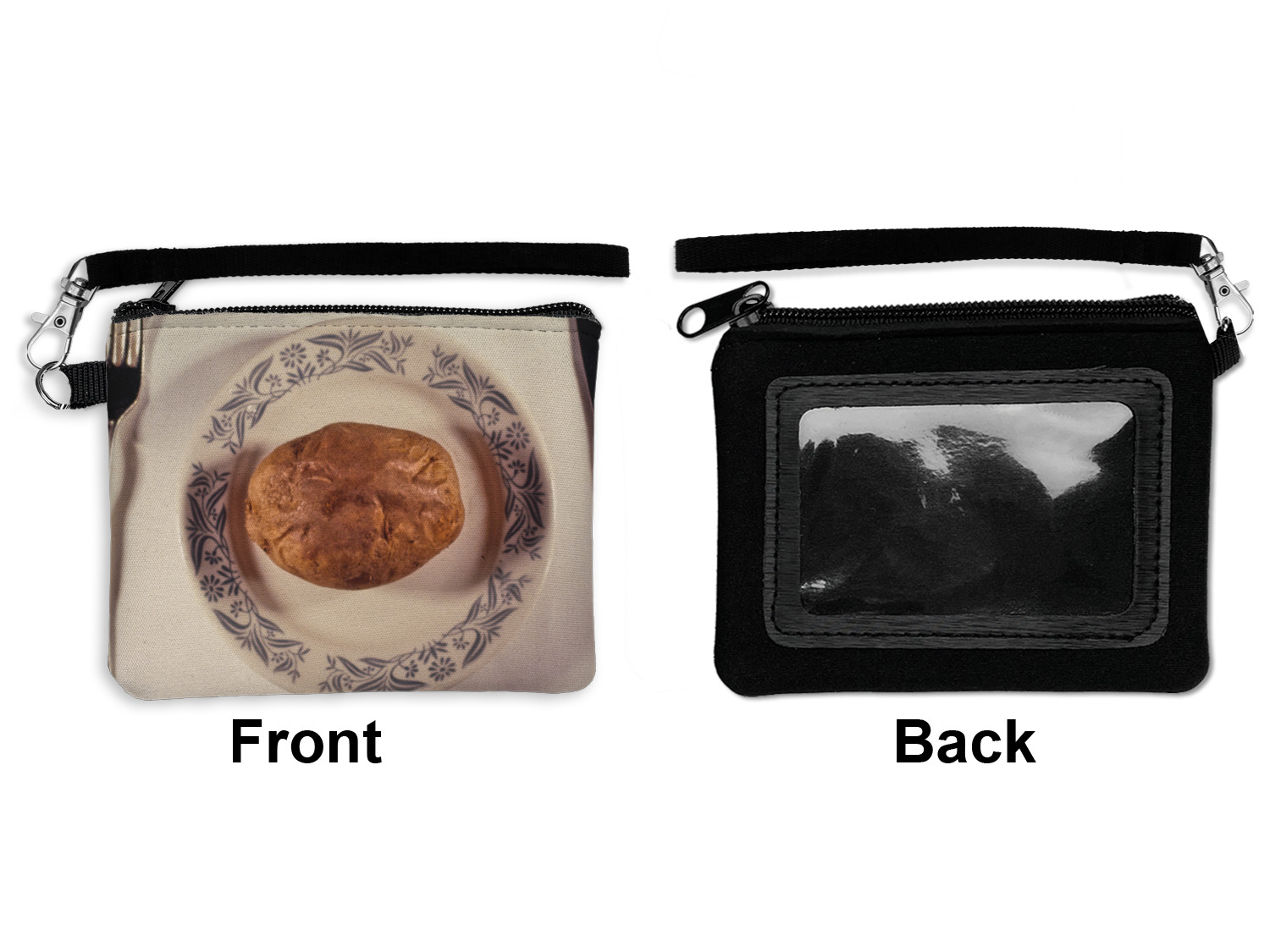 The front of the ID case is completely customizable with any design you want to print and make, the back of is made out of black neoprene material with an ID window in the center for easy access to your cards.