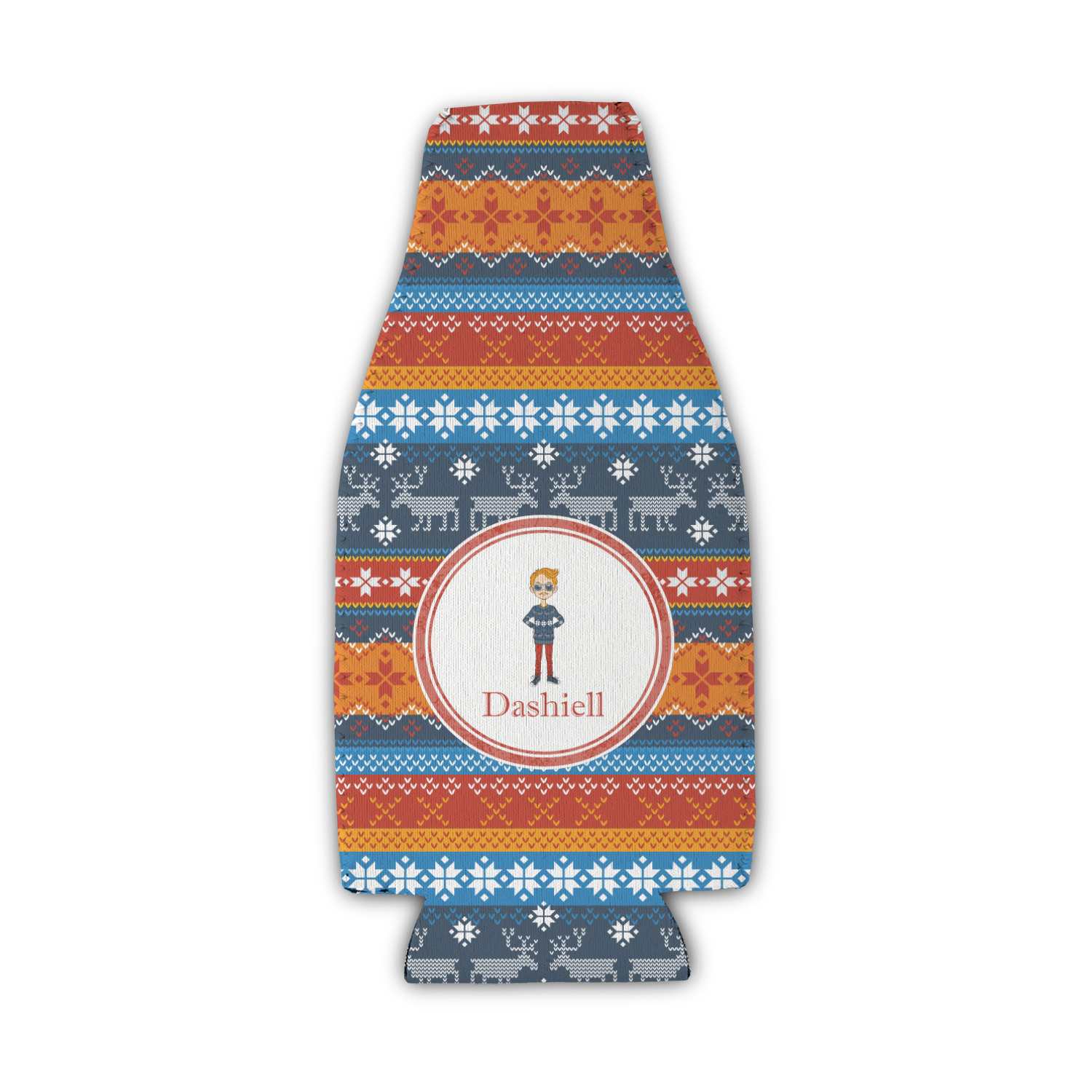 Hipster Winter Design on Custom Zipper Bottle Coolers - Set of 4