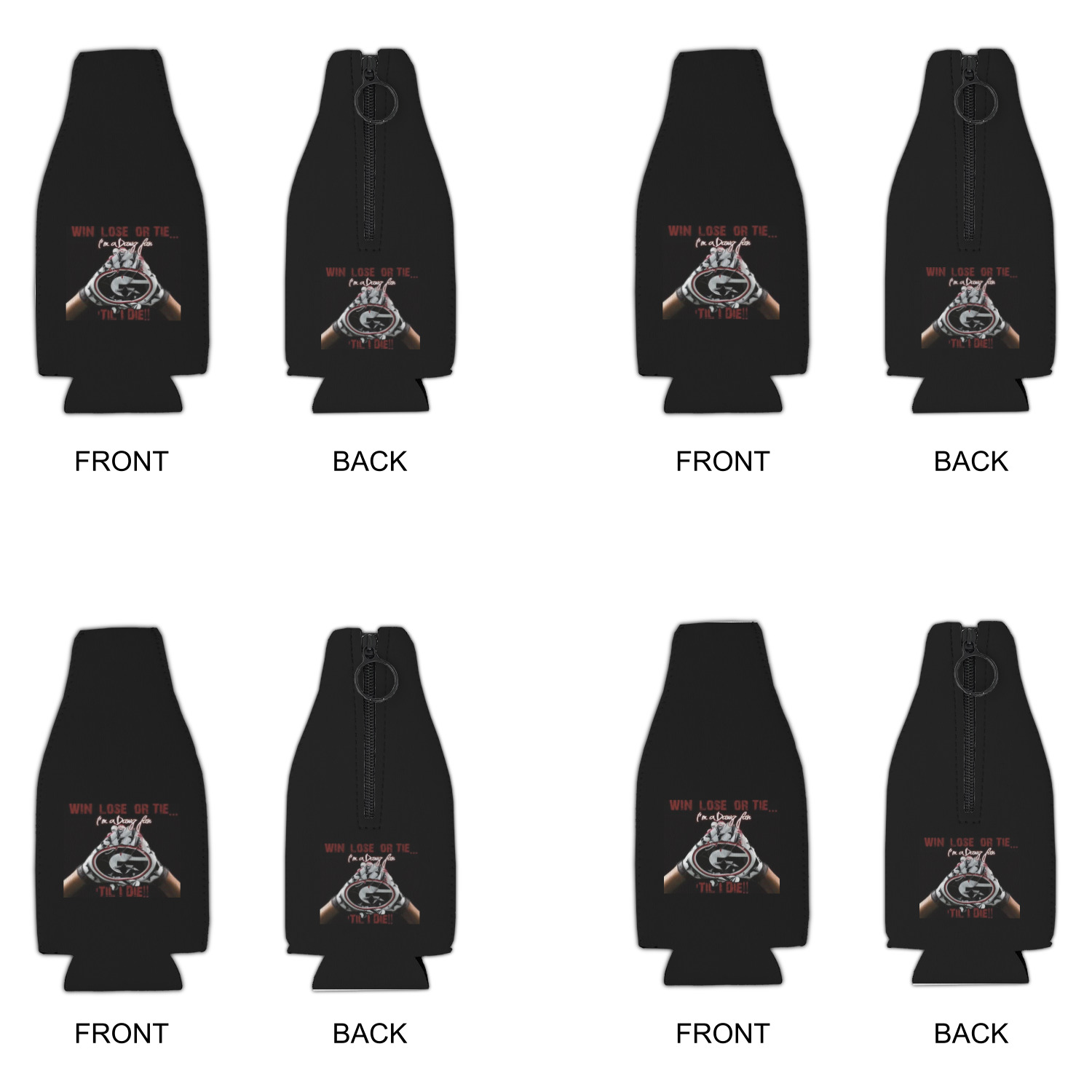 Fabricated from a thick, insulating neoprene, these custom can sleeve keep your drink cold, while proudly displaying your customization on all sides. These can sleeves are designed to fit most 12oz bottles. Available in two types - zipper cooler for insulating the full bottle or the jersey style for sports season. Also available as a single can sleeve or in a set of 4 for you to share with friends and family. For convenient storage, they can also be folded.