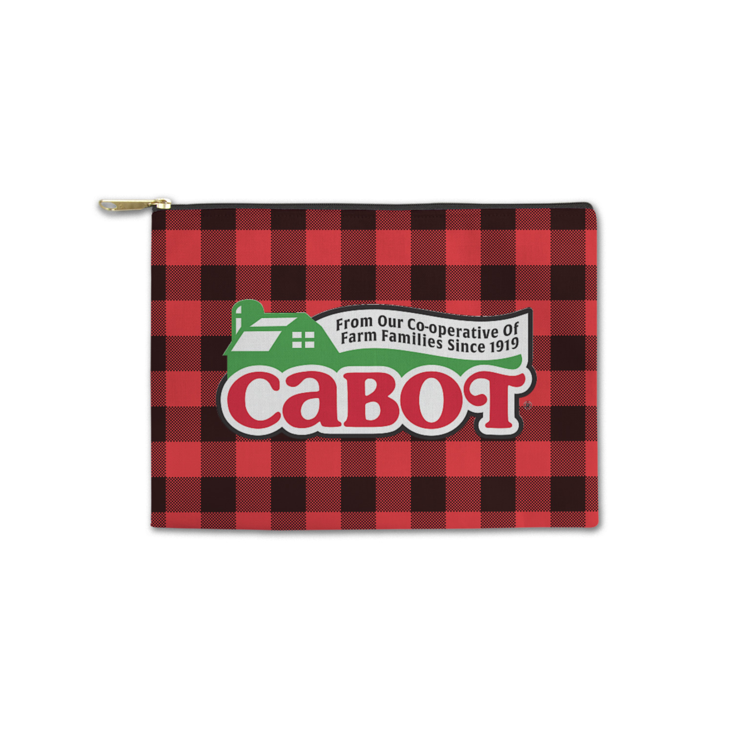 Our zippered pouches are available in two sizes - small: approx 8.5W"x6H and large: approx 12.5Wx8.5H. The pouches are made from a soft & durable canvas fabric that is printed on the outside with your design; the inside has a fused black lining. The printed canvas fabric is then cut and the pouches are sewn right here in the USA. The zipper itself is gold in color and has a round hook.
