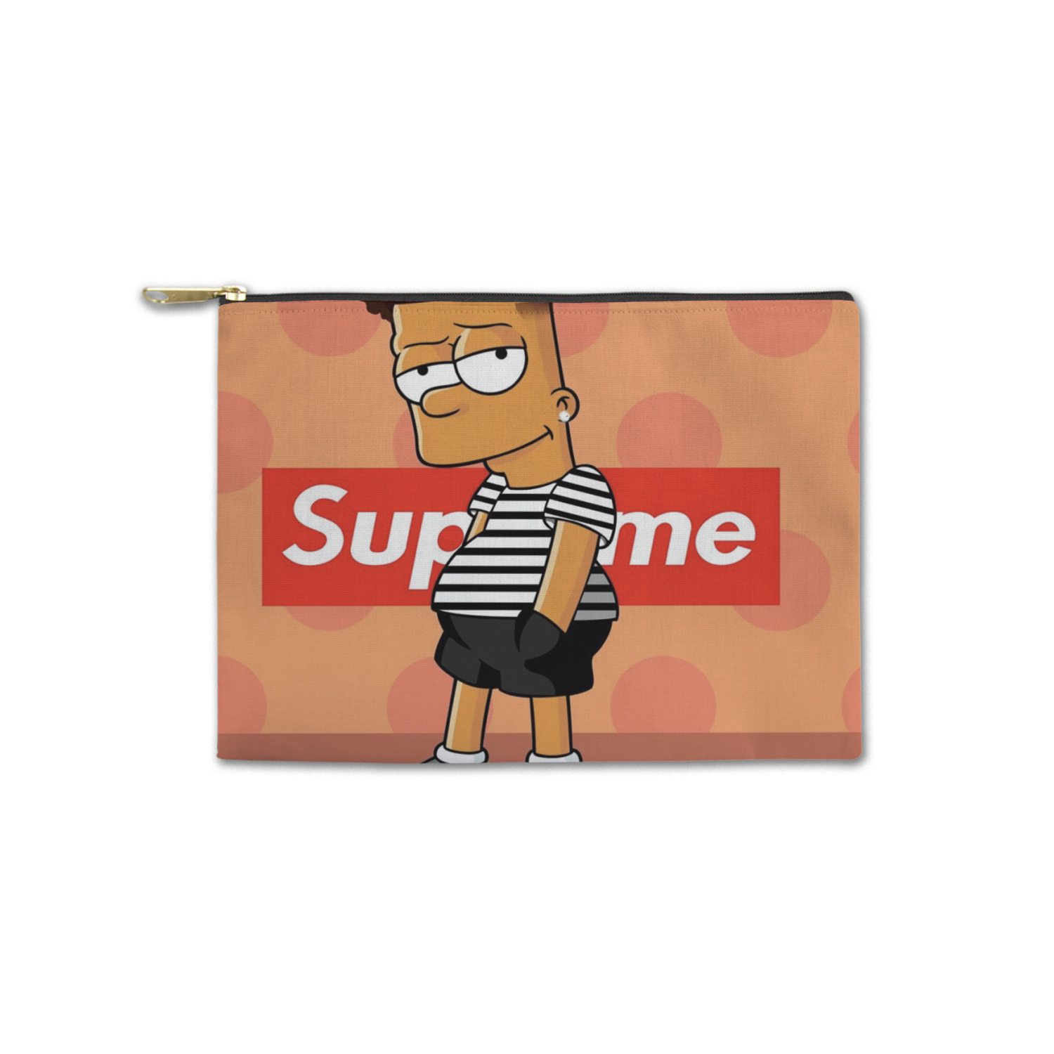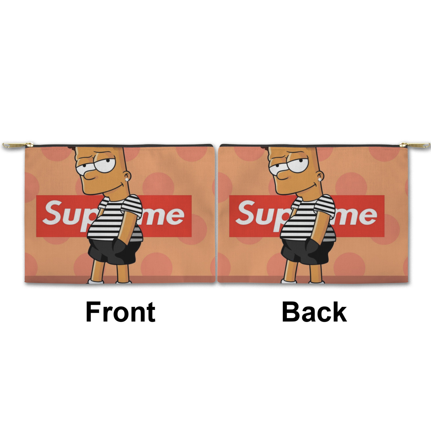 Our zippered pouches are available in two sizes - small: approx 8.5W"x6H and large: approx 12.5Wx8.5H. The pouches are made from a soft & durable canvas fabric that is printed on the outside with your design; the inside has a fused black lining. The printed canvas fabric is then cut and the pouches are sewn right here in the USA. The zipper itself is gold in color and has a round hook.
