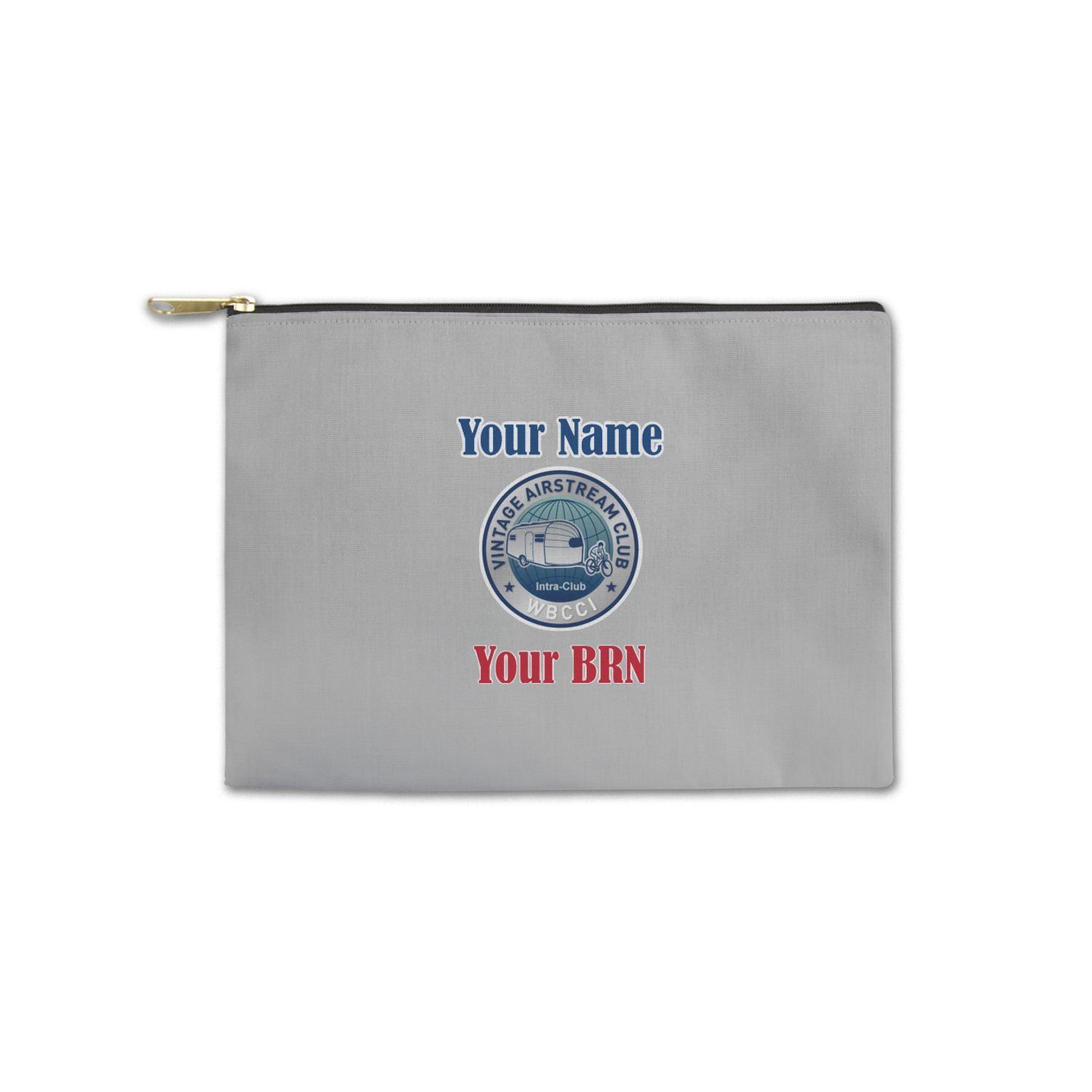 Our zippered pouches are available in two sizes - small: approx 8.5W"x6H and large: approx 12.5Wx8.5H. The pouches are made from a soft & durable canvas fabric that is printed on the outside with your design; the inside has a fused black lining. The printed canvas fabric is then cut and the pouches are sewn right here in the USA. The zipper itself is gold in color and has a round hook.